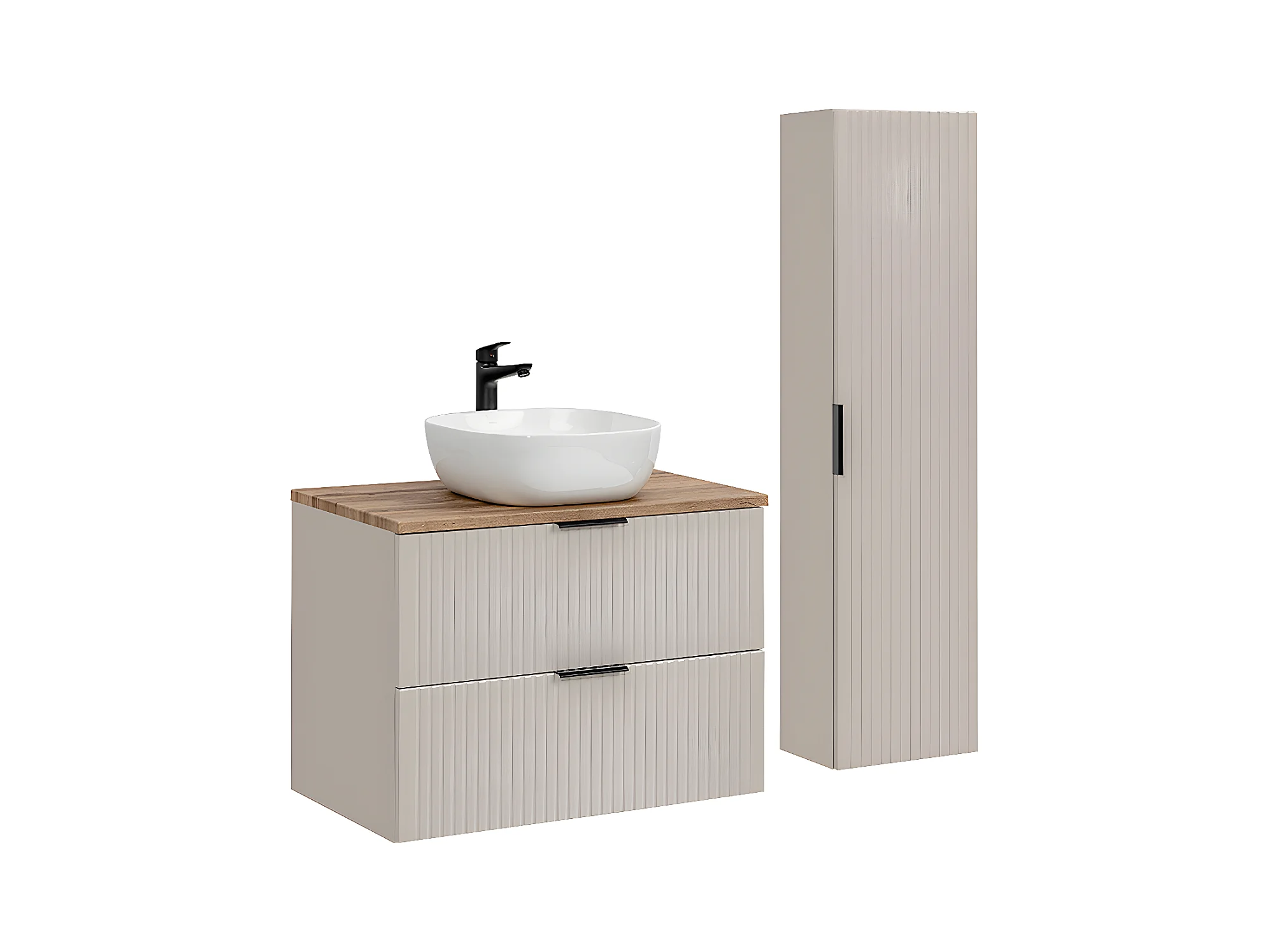 Ensemble meuble simple vasque 80cm et colonne Adriel Cachemire et Bois