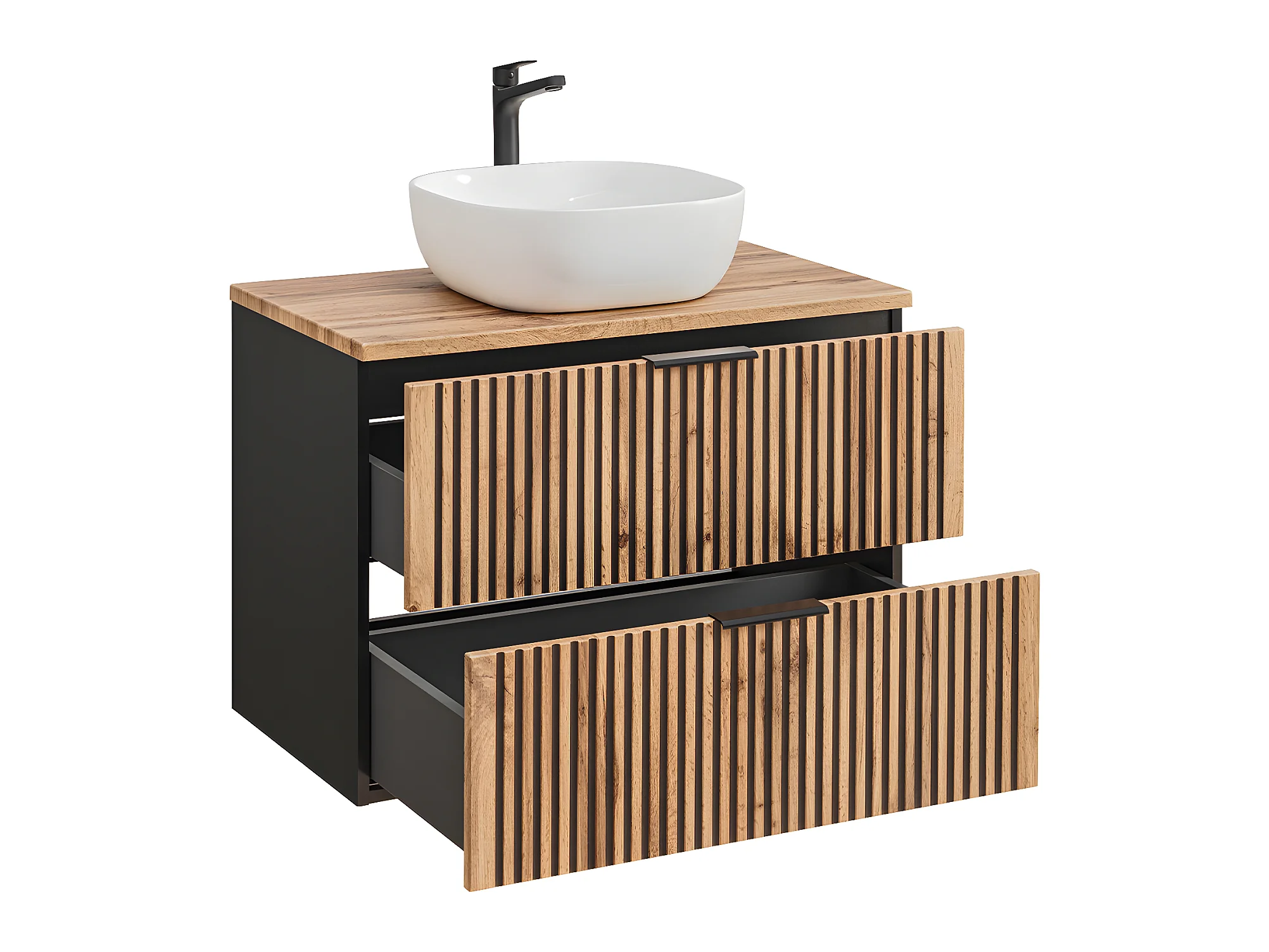 Ensemble meuble simple vasque 80cm 2 niches et colonne Gaia Bois et Noir - Vasque Noir