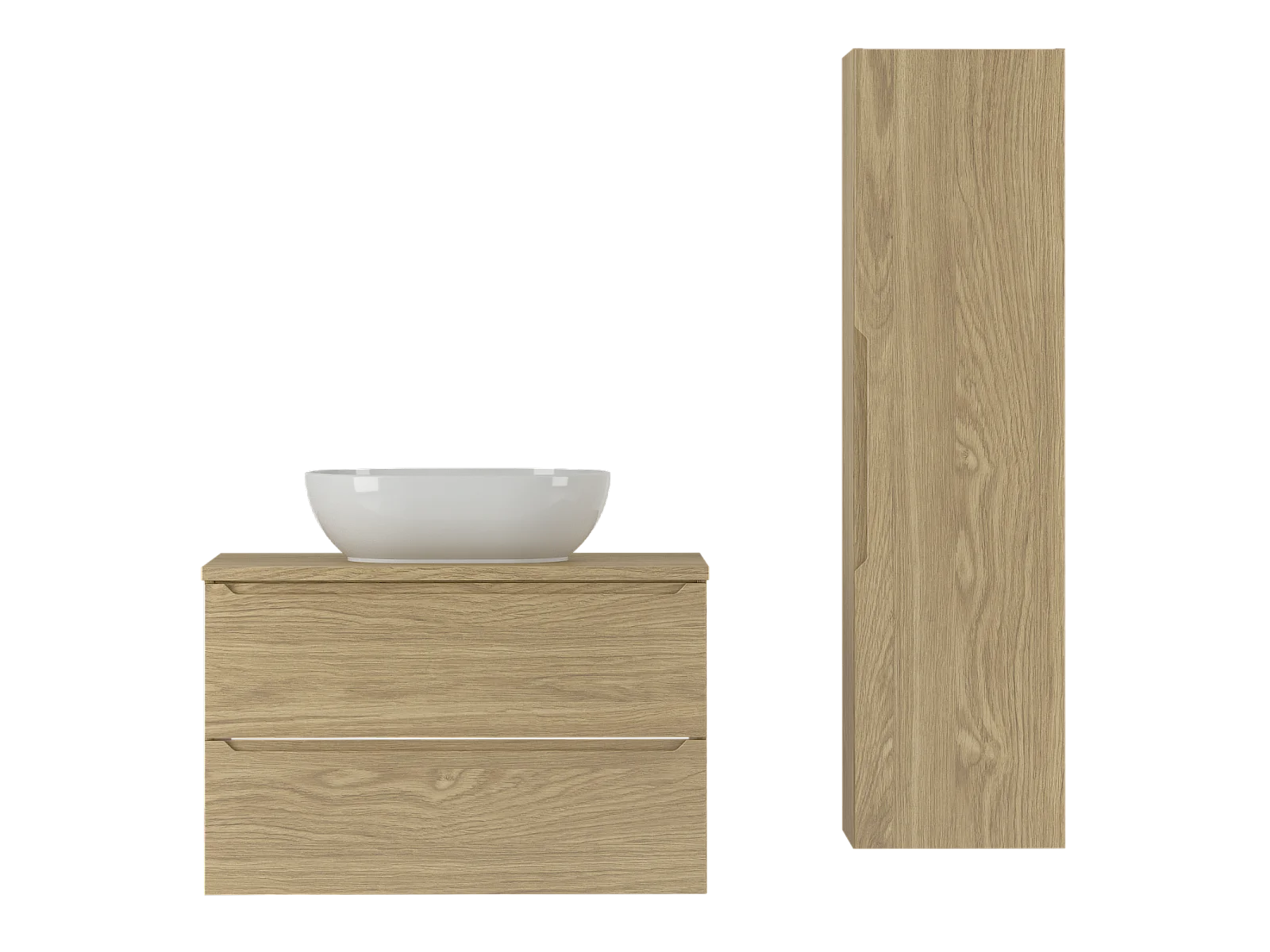 Ensemble pour salle de bain 80 cm Armoire avec plan de travail Lavabo Colonne Chêne huilé Etna