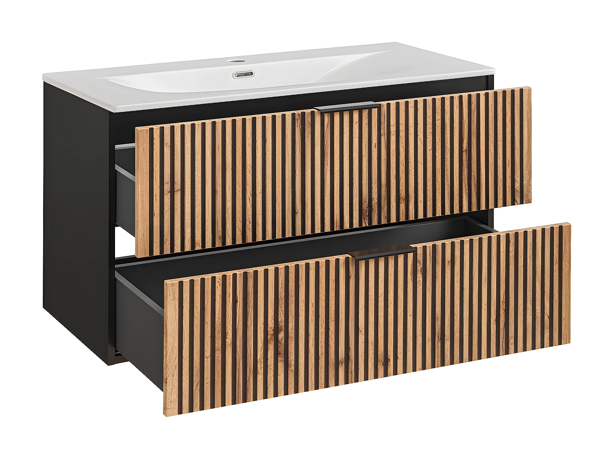 Ensemble meuble simple vasque encastrée 100cm et colonne Gaia Bois et Noir