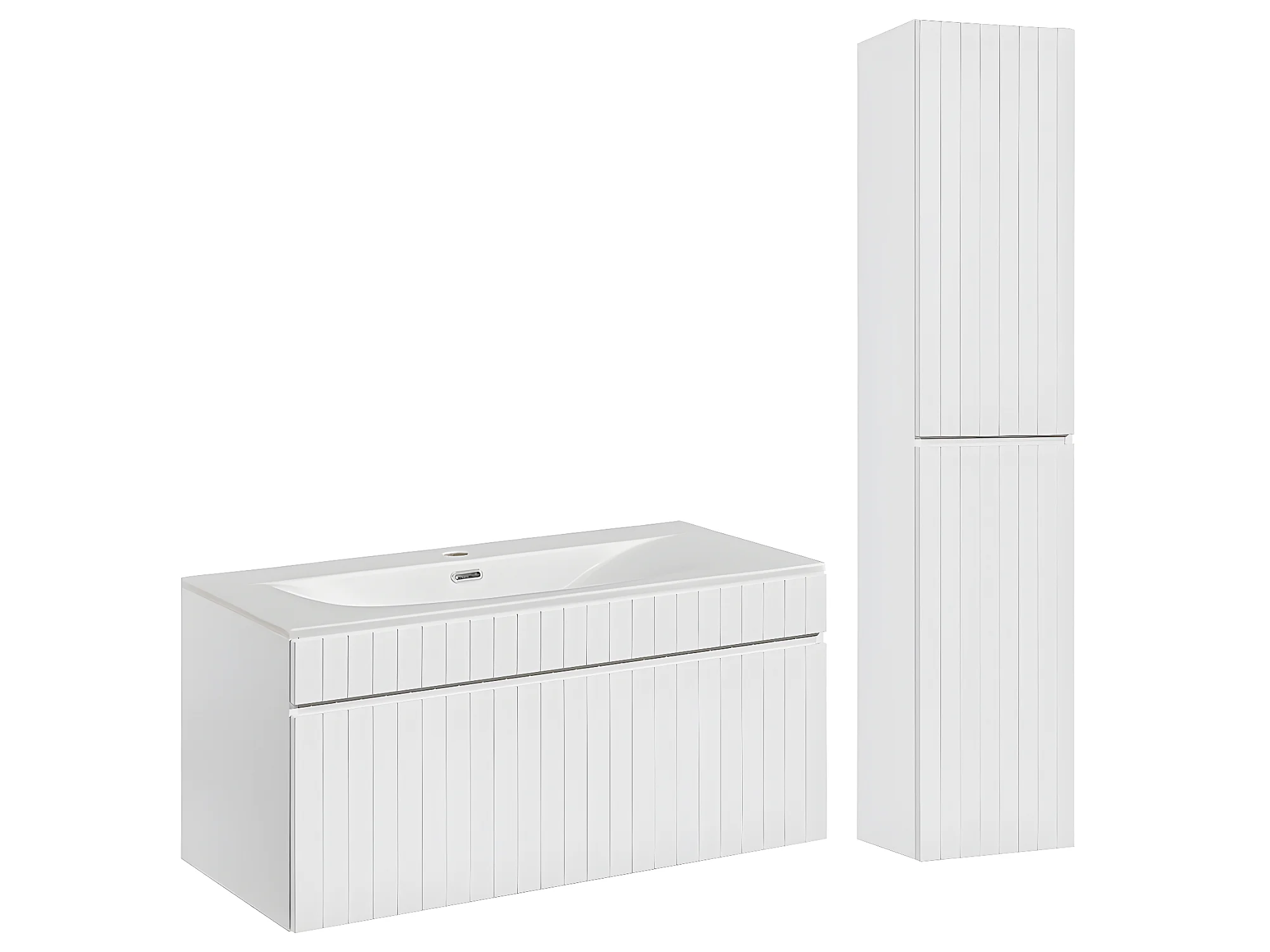 Ensemble meuble simple vasque encastrée 100cm et colonne Zelie Blanc