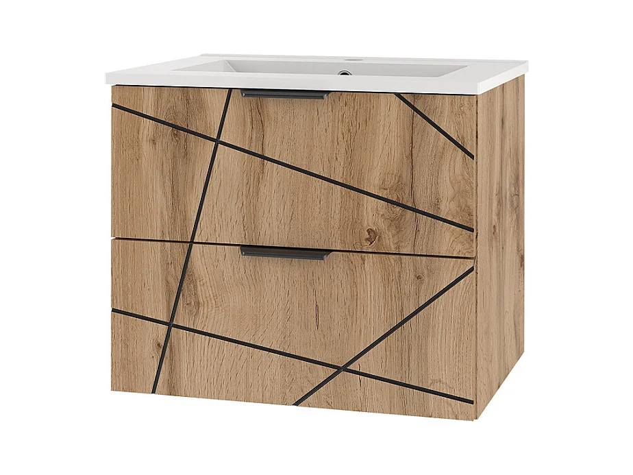 Ensemble meuble simple vasque encastrée 60cm et colonne Teren Bois