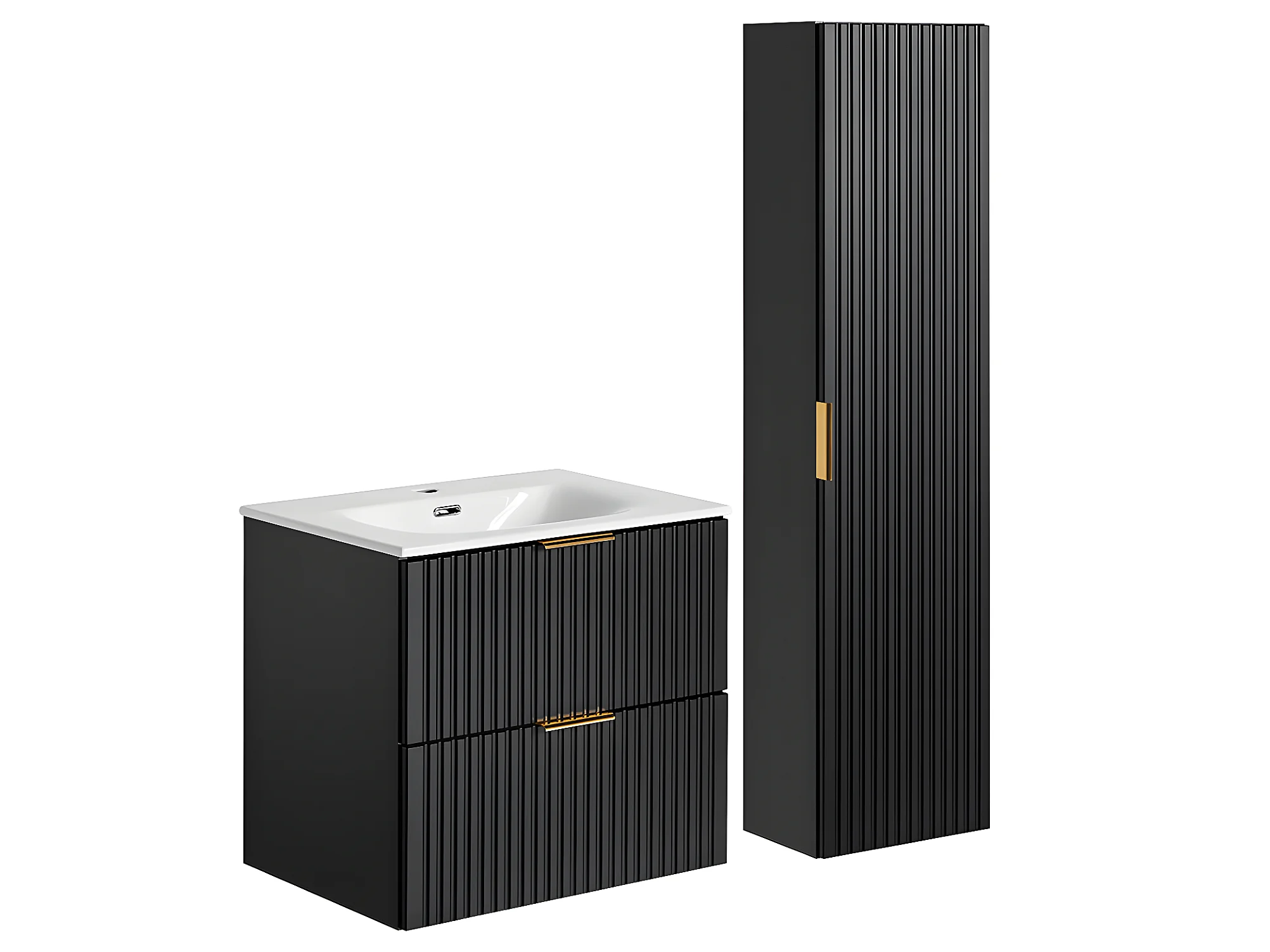 Ensemble meuble simple vasque 60cm et colonne Adriel Noir