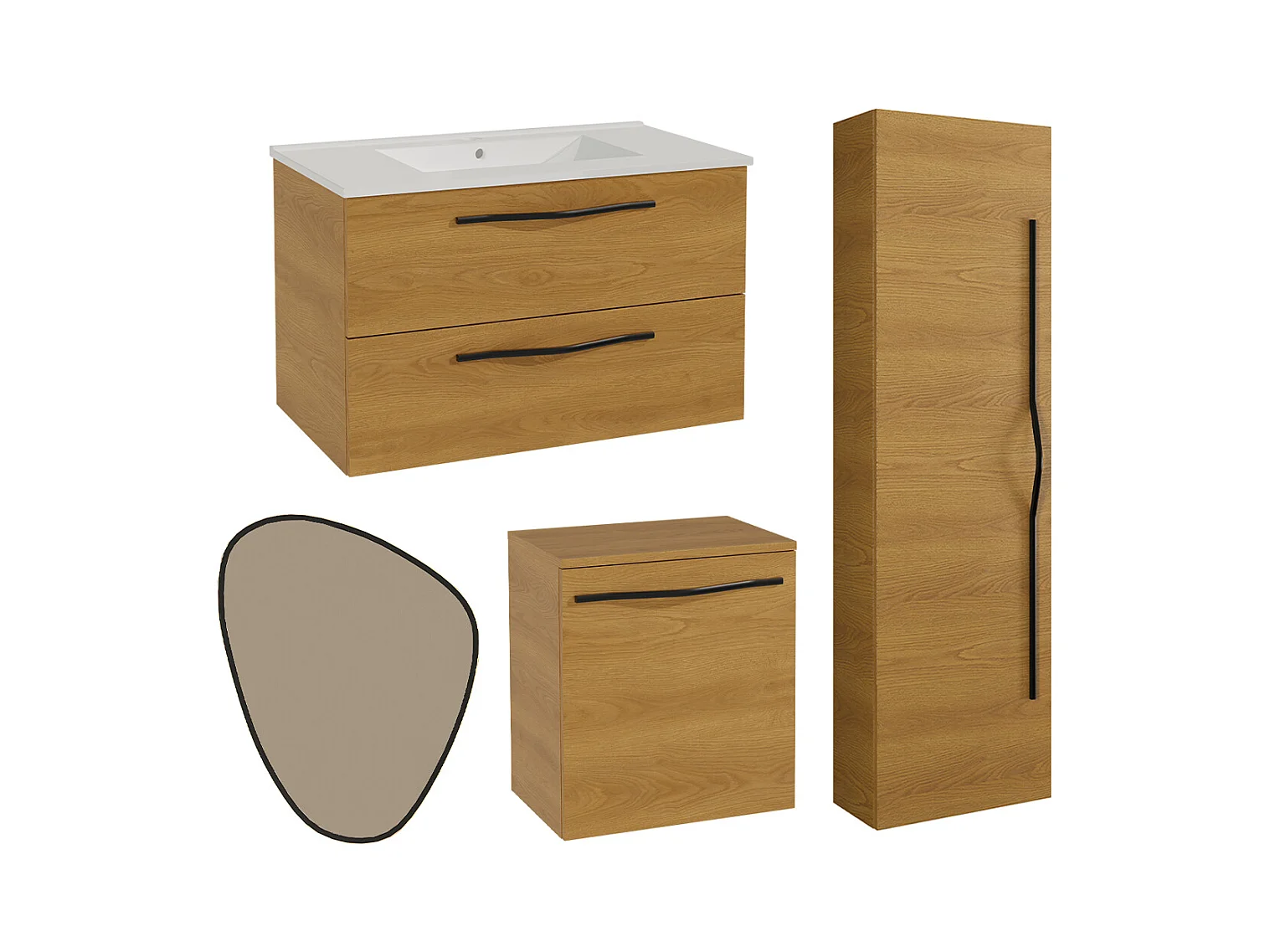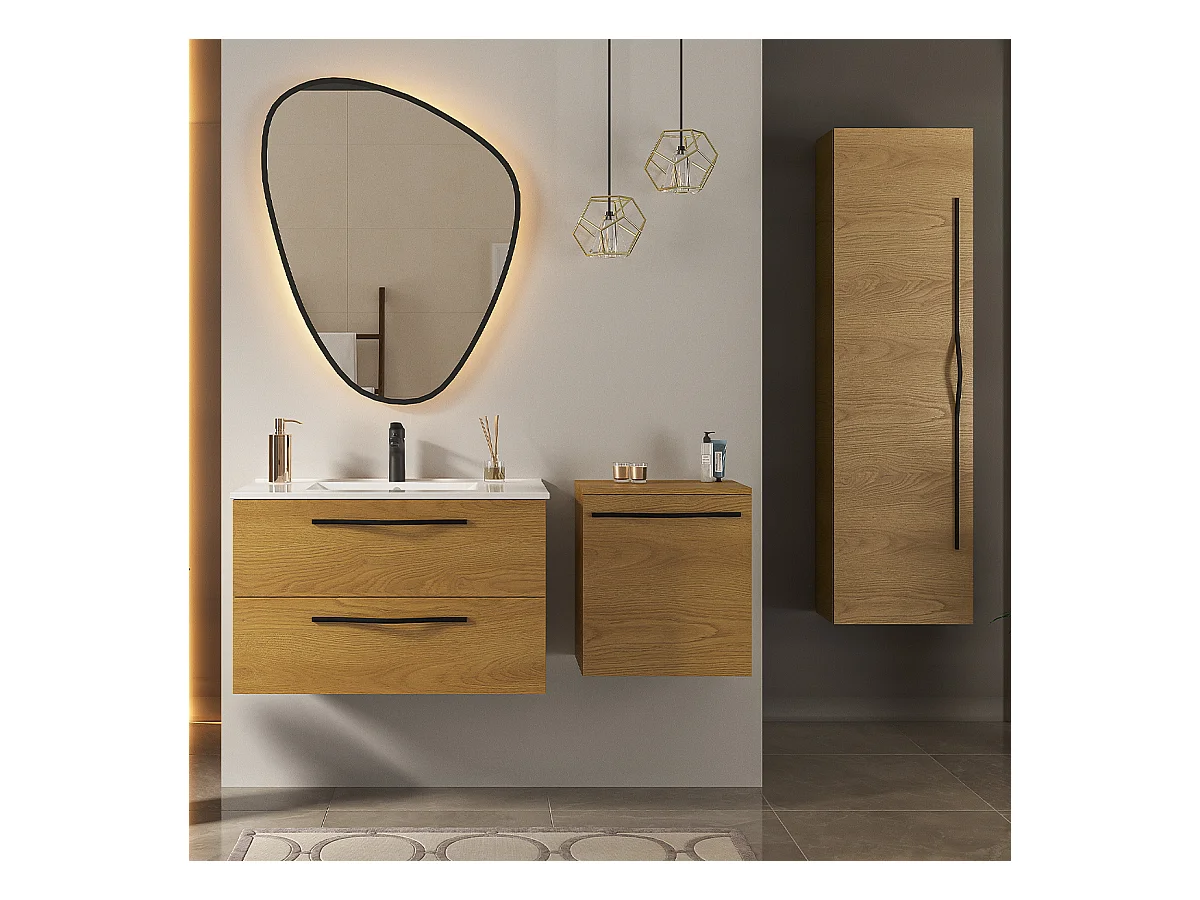 Ensemble meuble simple vasque encastrée 80 cm miroir LED armoire et colonne Douglas Bois