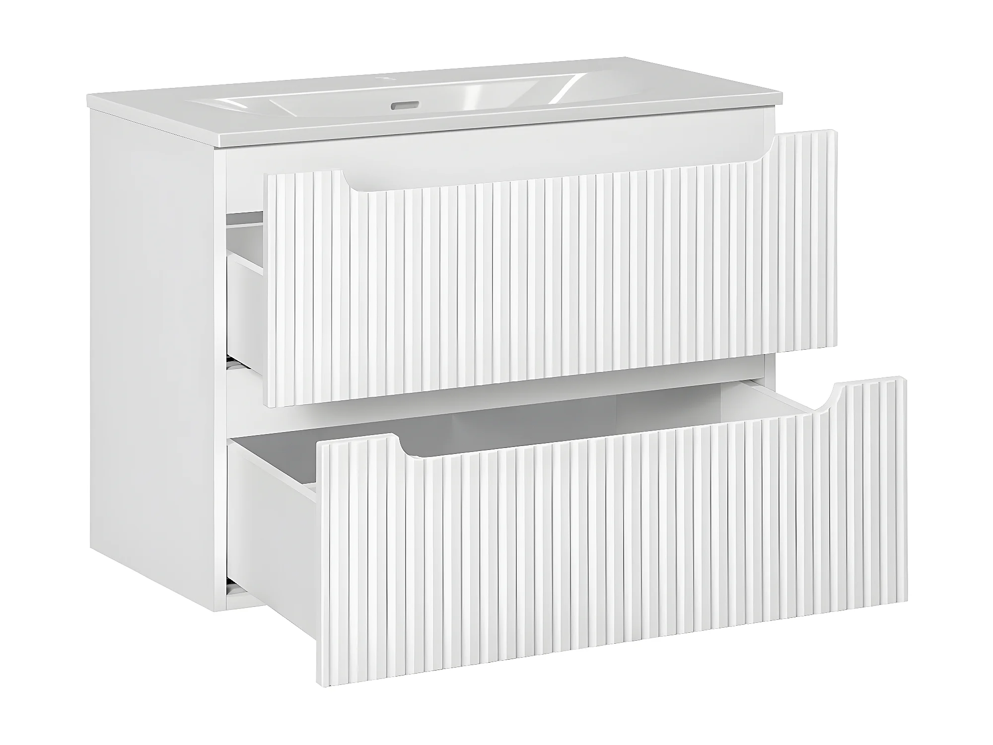 Ensemble meuble simple vasque encastrée 80cm et colonne April Blanc