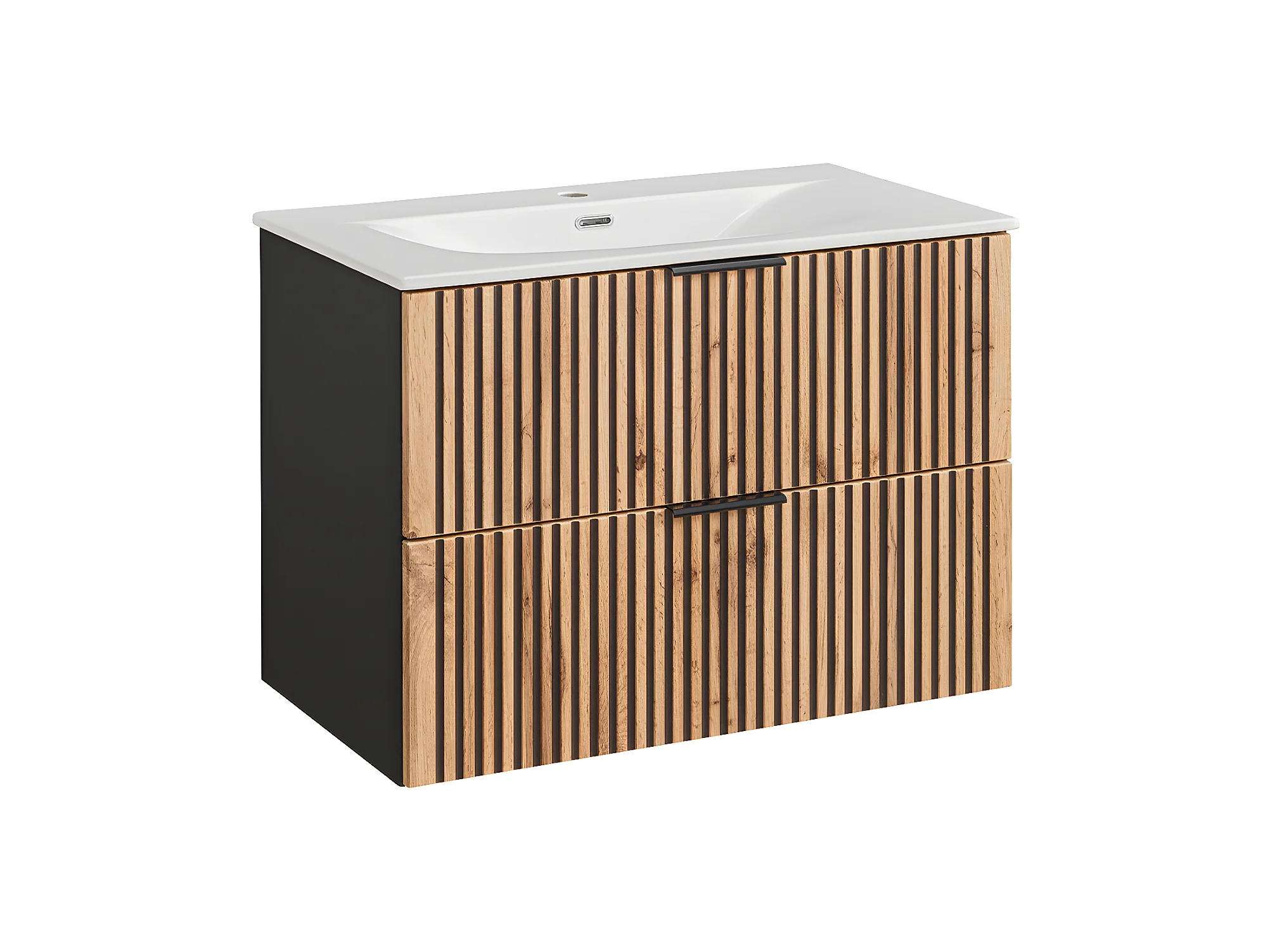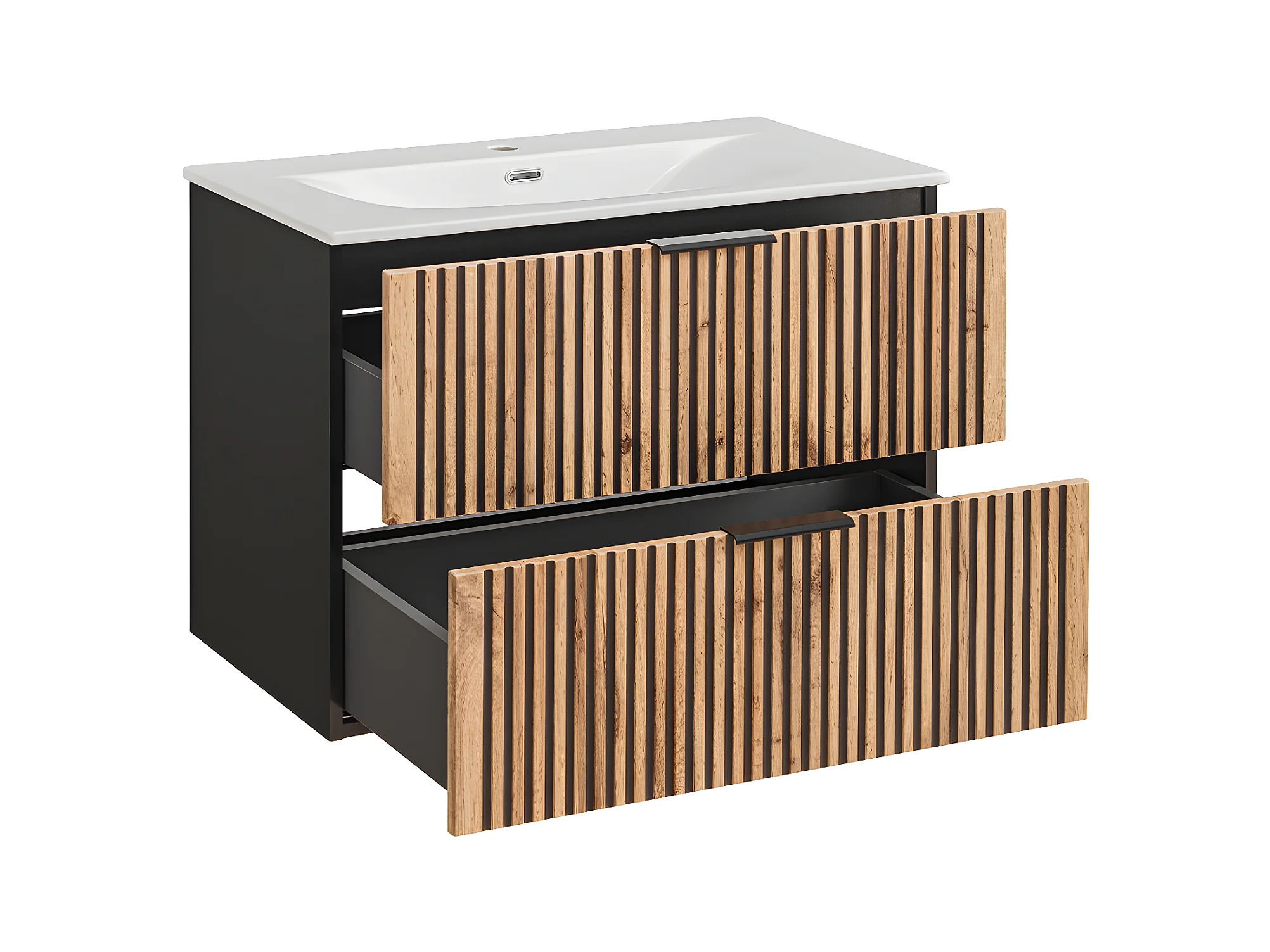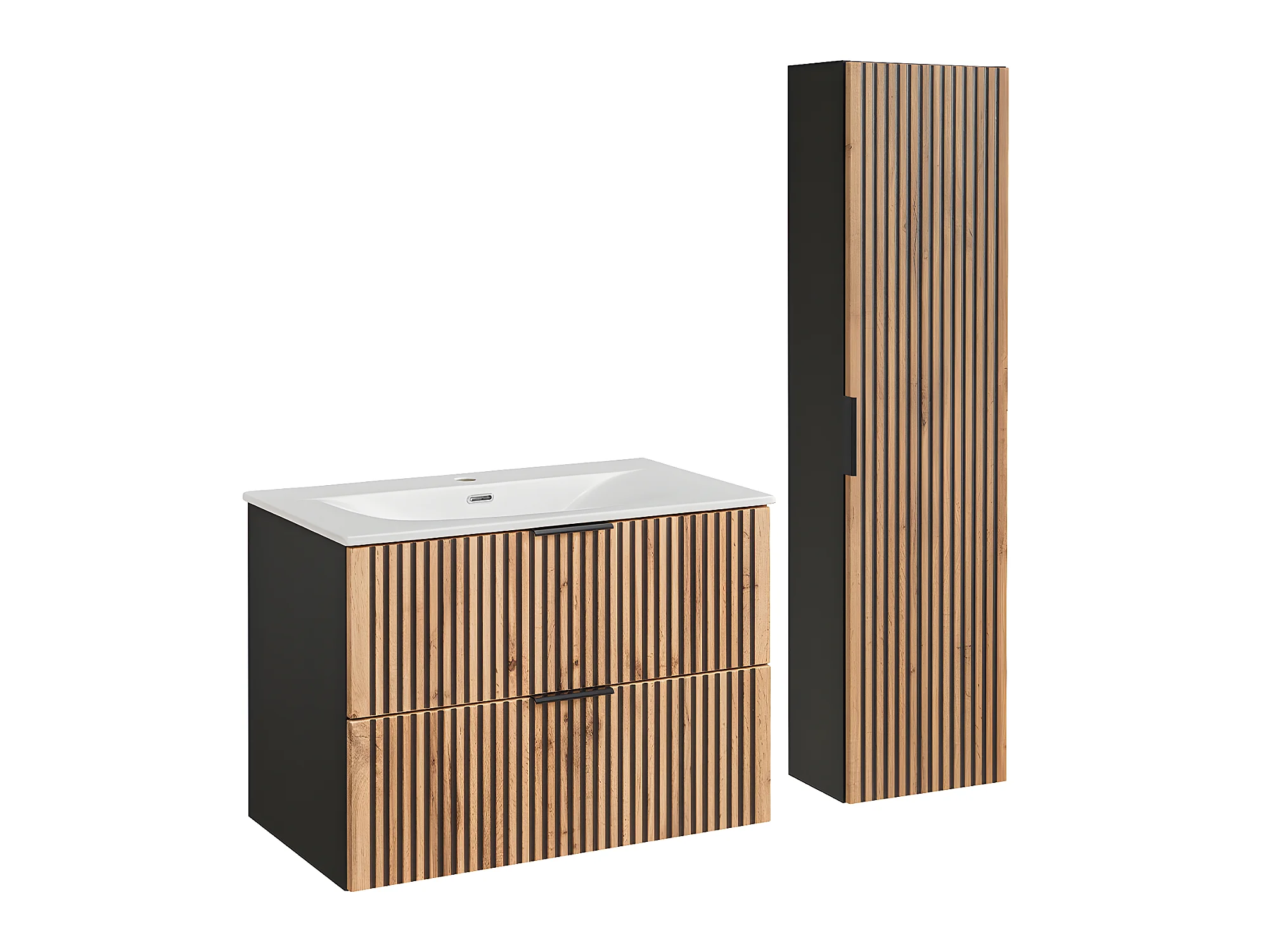 Ensemble meuble simple vasque 80cm et colonne Adriel Noir et Bois