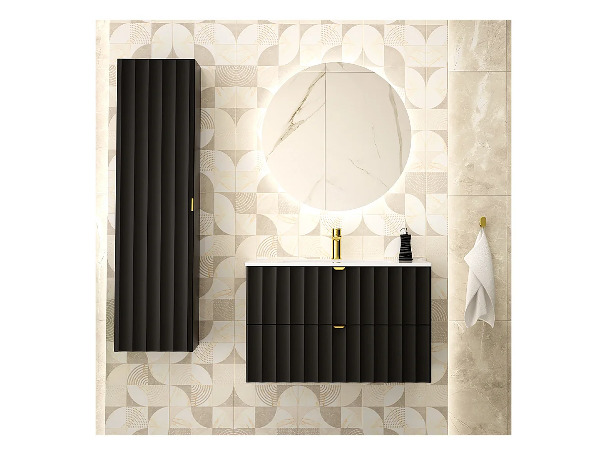 Ensemble meuble simple vasque encastrée 80cm et colonne Lexa Noir