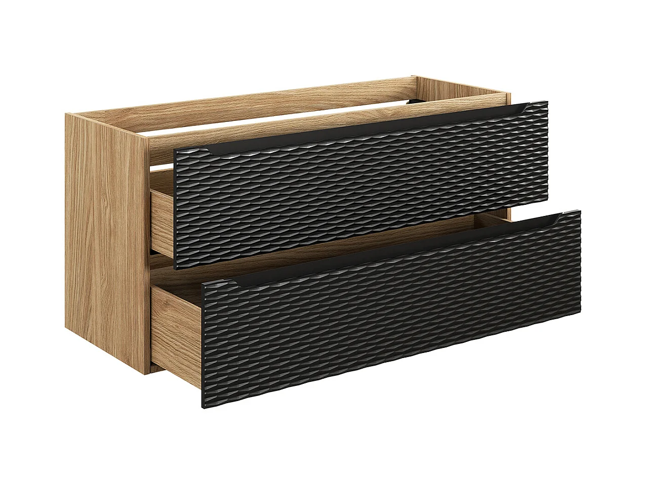 Ensemble meuble double vasque 120cm 4 tiroirs et colonne Elora Noir et bois Cloud