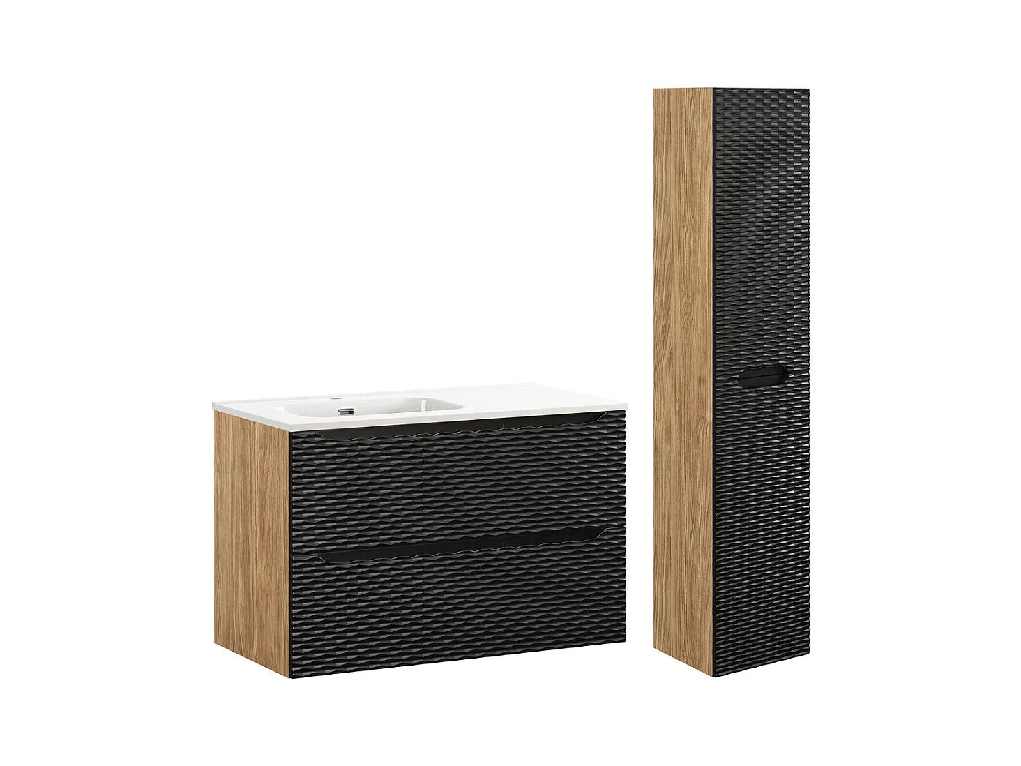 Ensemble meuble simple vasque 90cm et colonne Elora Noir et bois