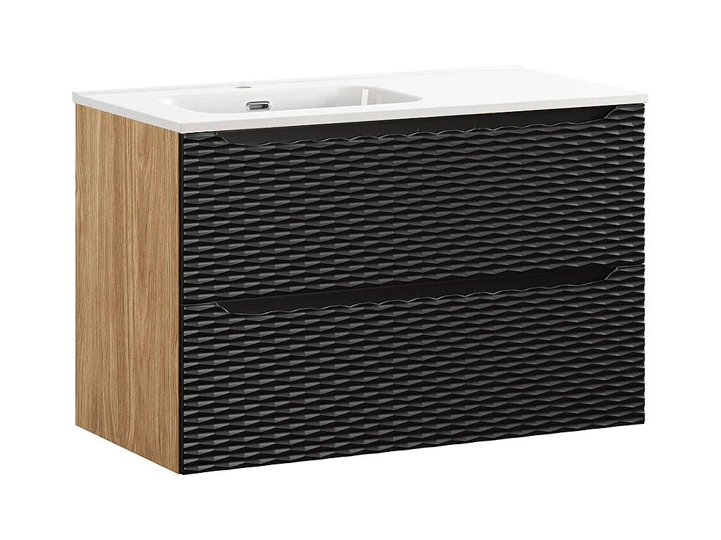 Ensemble meuble simple vasque encastrée gauche 90cm et colonne Elora Noir et bois