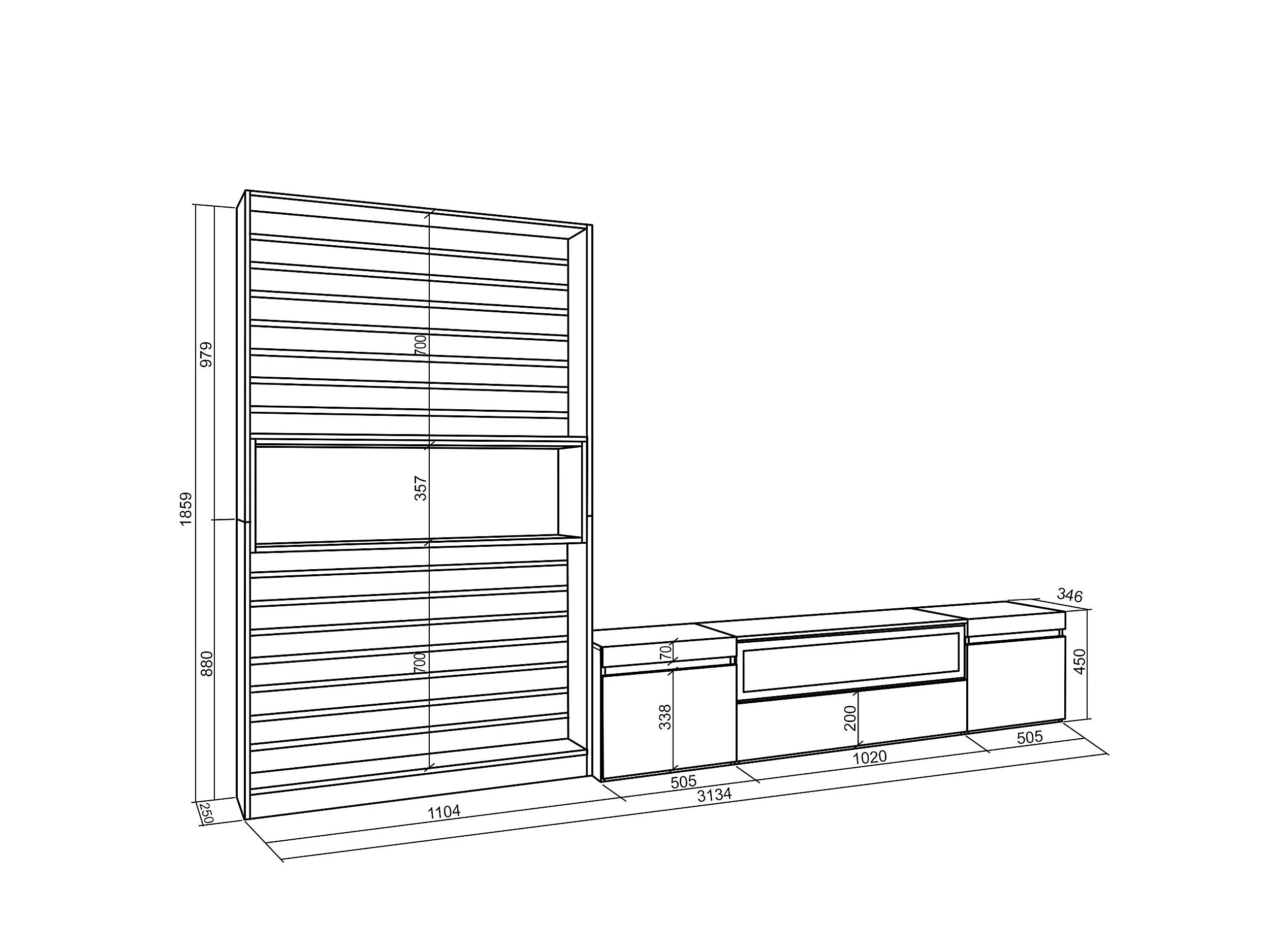 Ensemble Meuble TV, 310x35x186cm, Pour les TV jusqu'à 80", Cheminée électrique, Chêne et noir