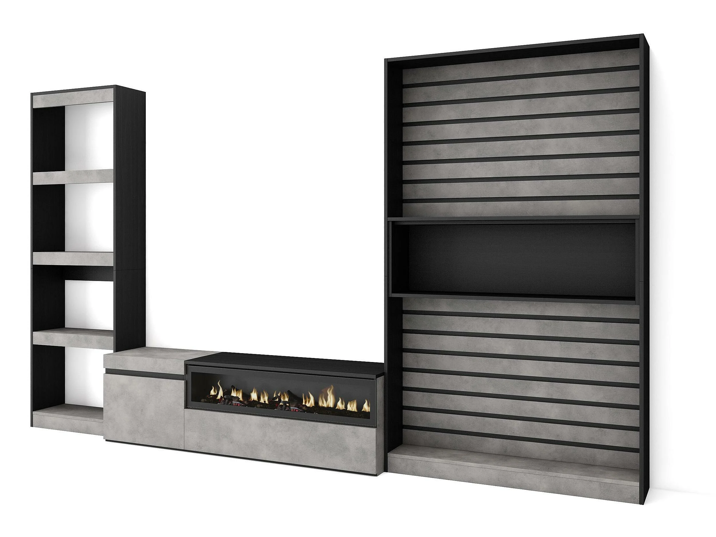 Ensemble Meuble TV, 320x186x35cm, Cheminée électrique, Ciment