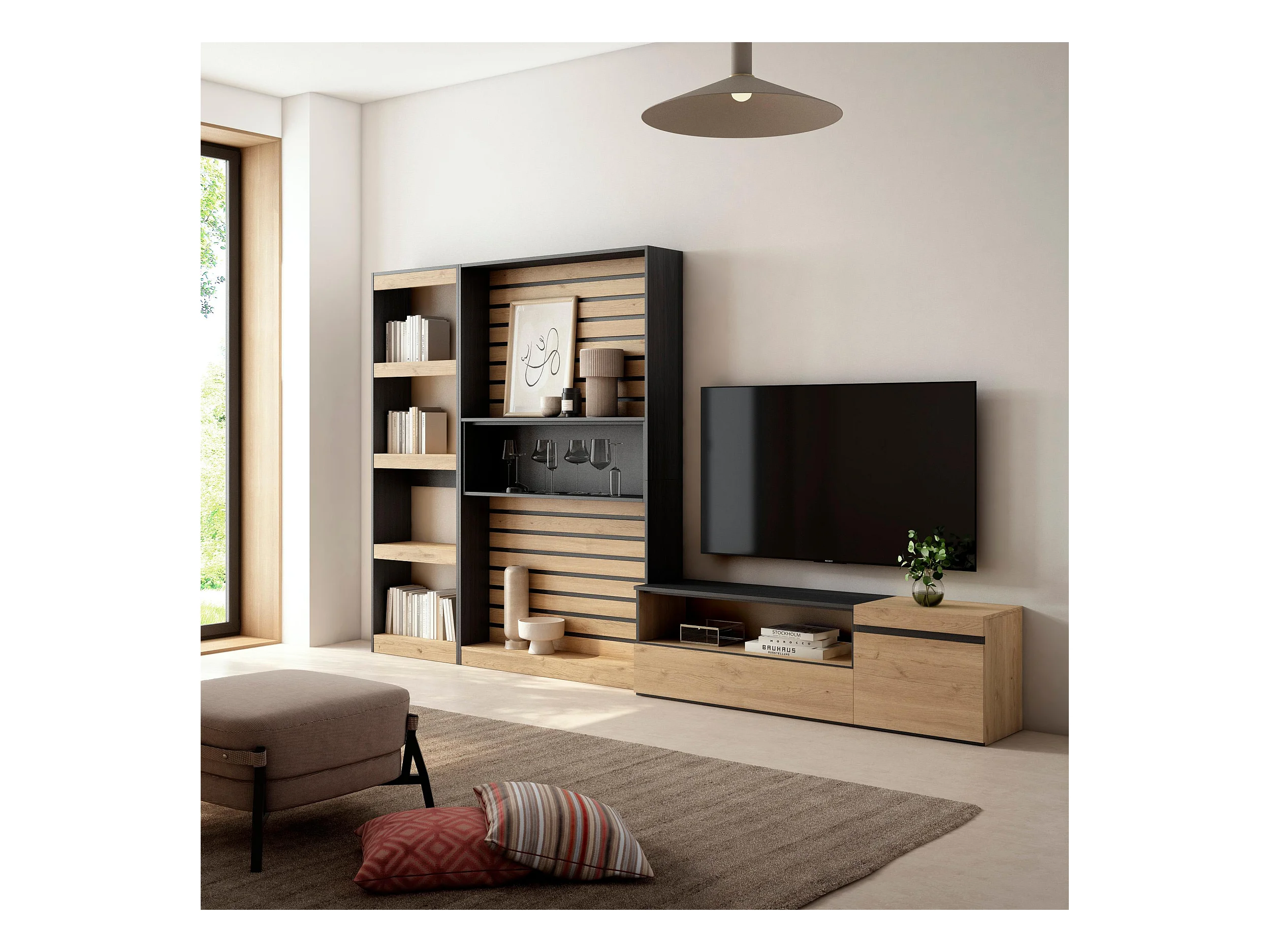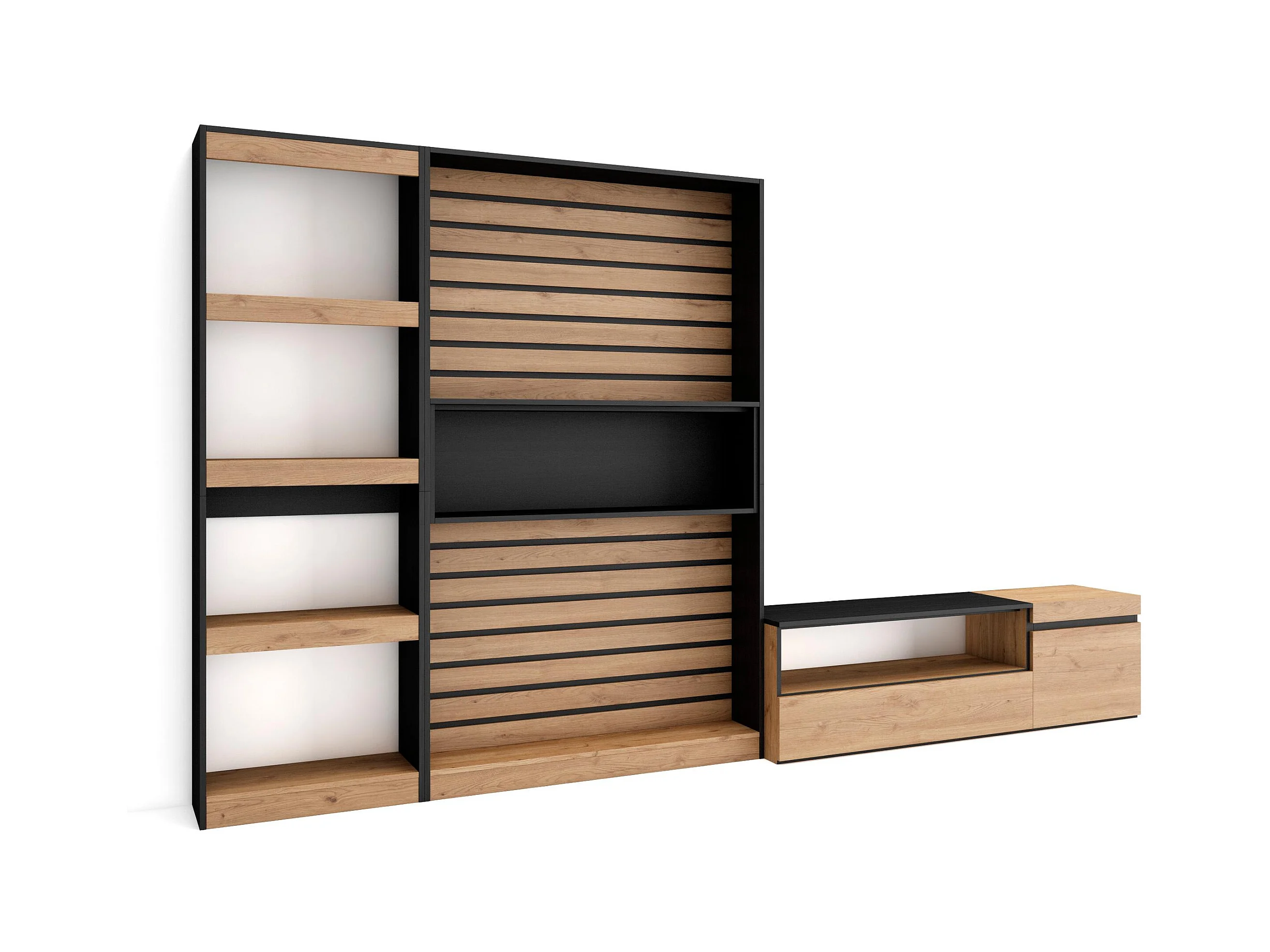 Ensemble Meuble TV, 320x35x186cm, Salon Complet, Chêne et noir
