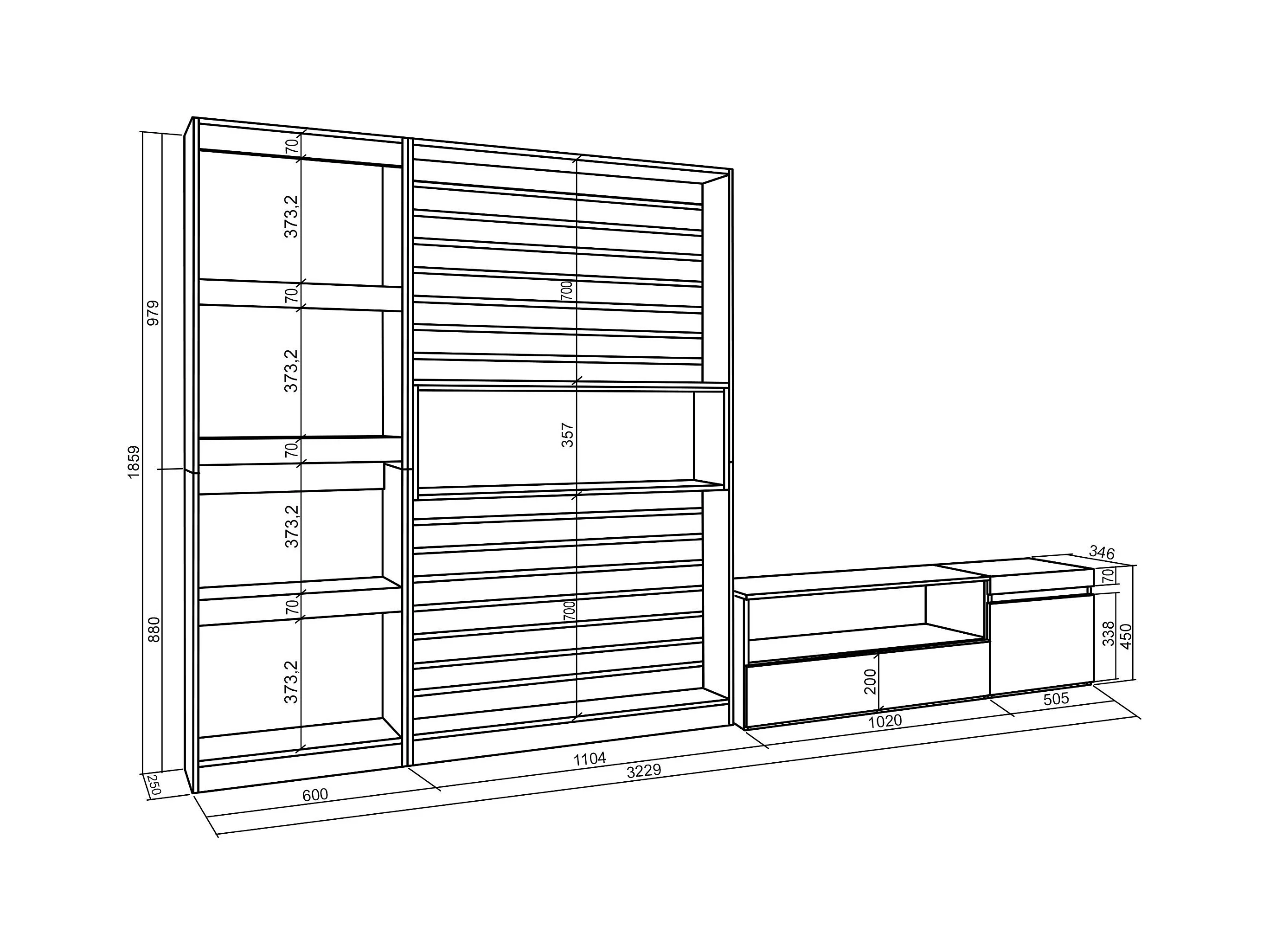 Ensemble Meuble TV, 320x35x186cm, Pour les TV jusqu'à 80", Salon Complet, Chêne et noir