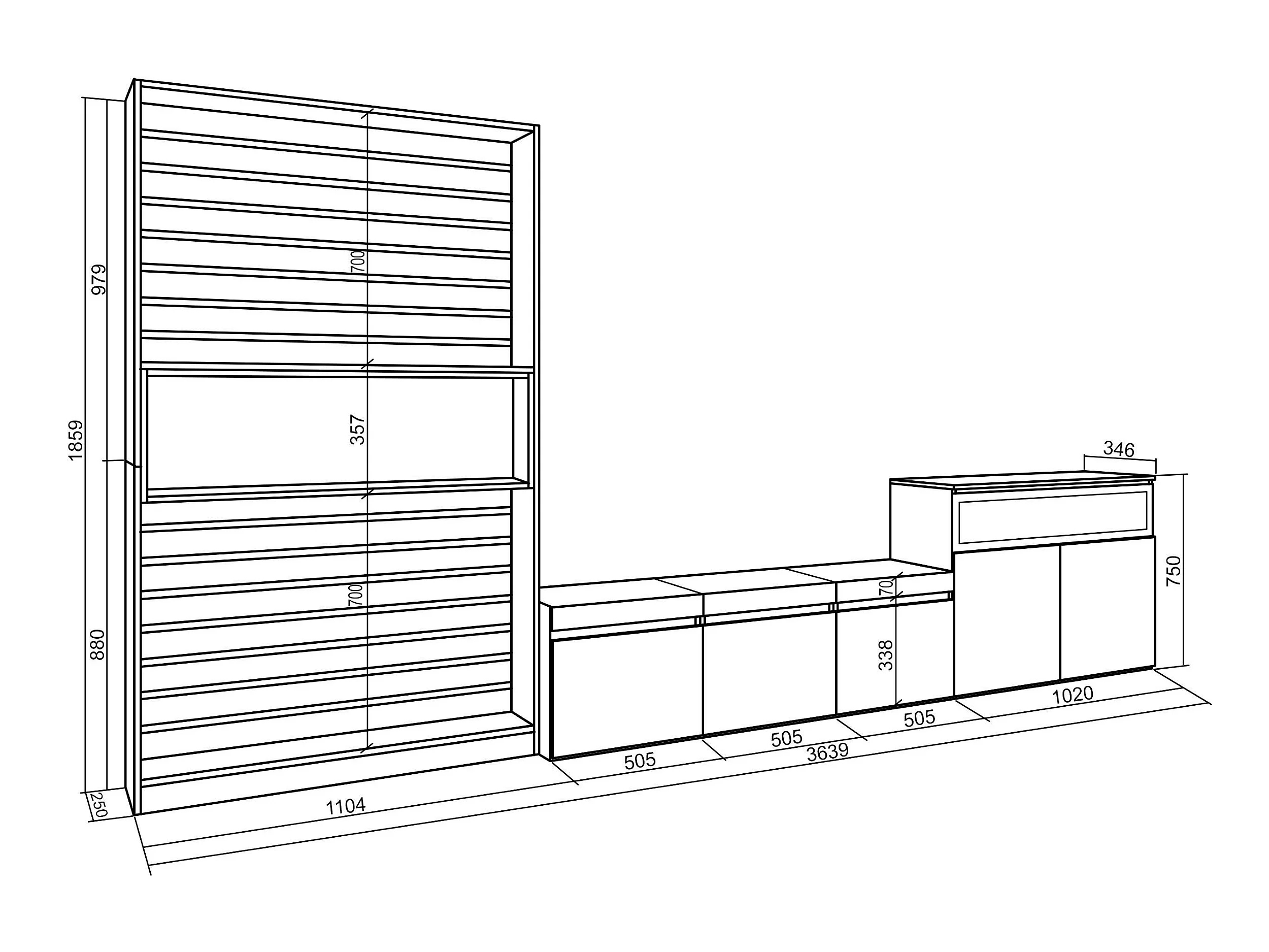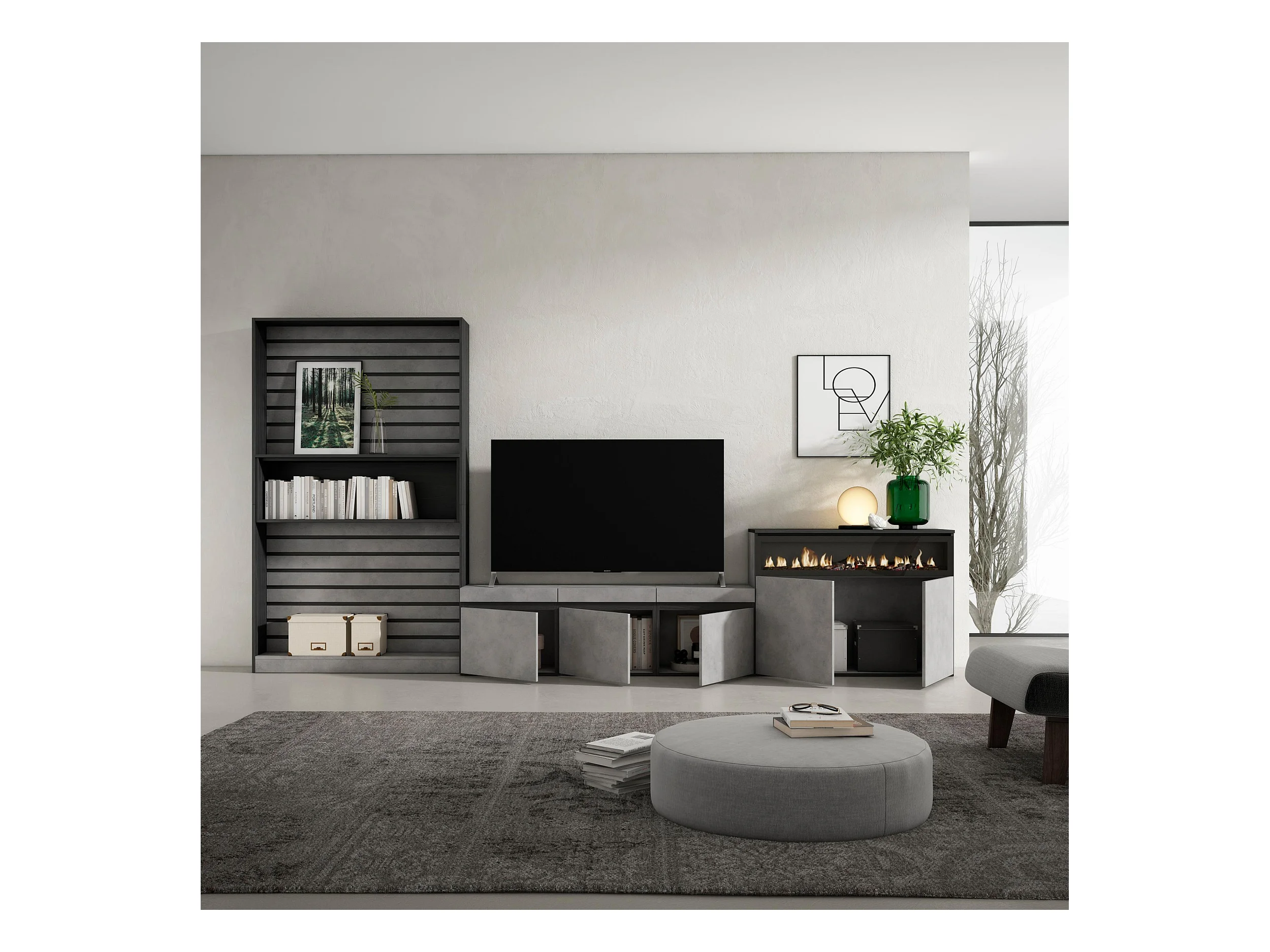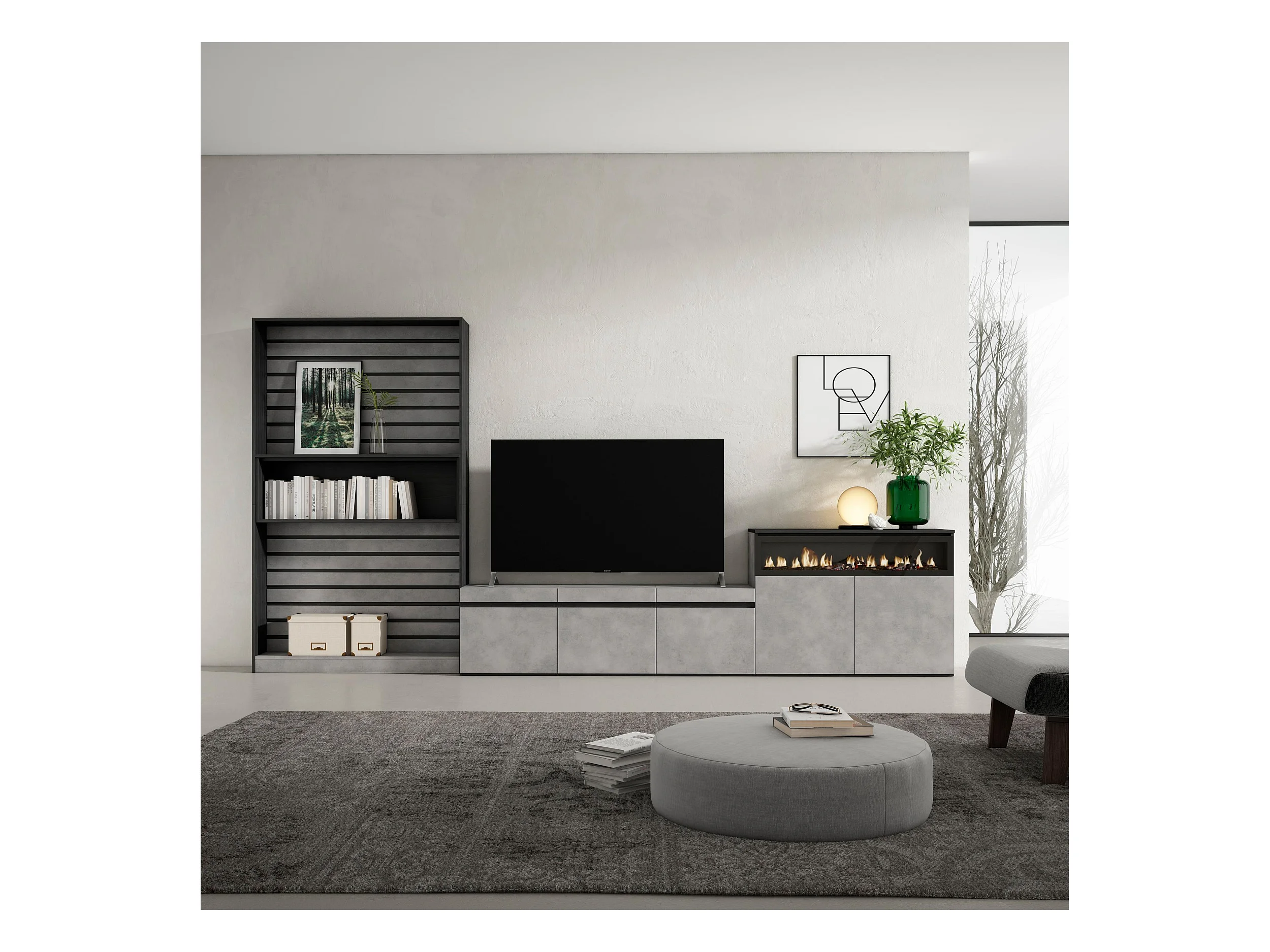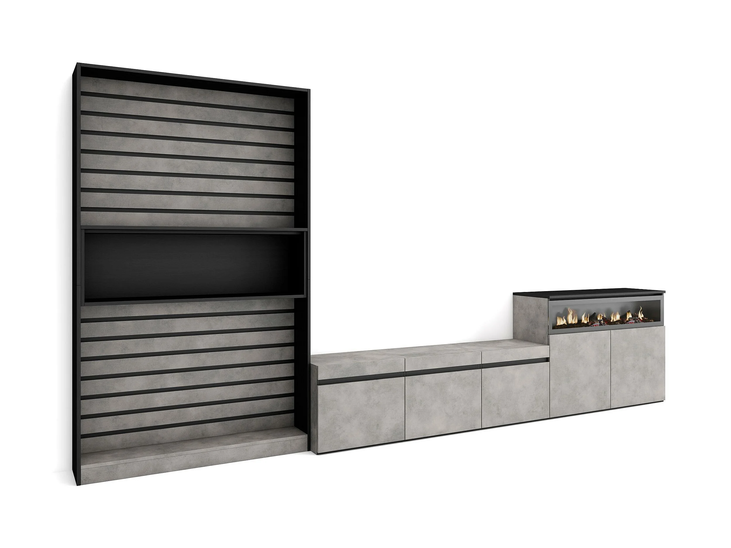 Ensemble Meuble TV, 360x186x35cm, Pour les TV jusqu'à 65", Cheminée électrique, Ciment