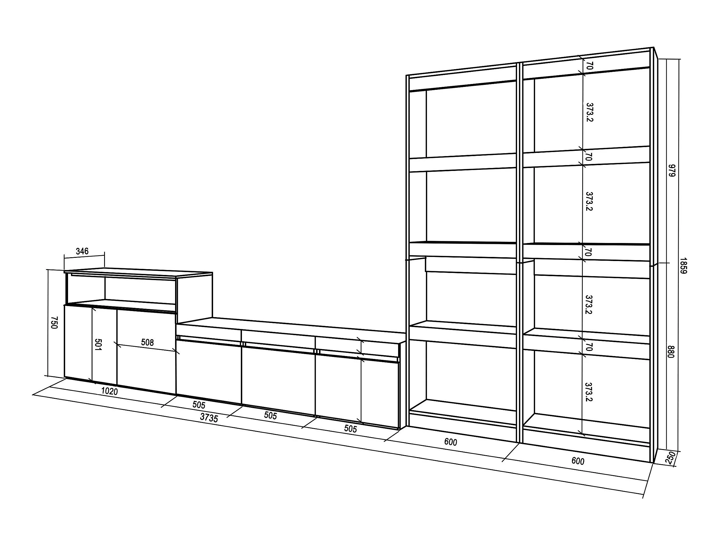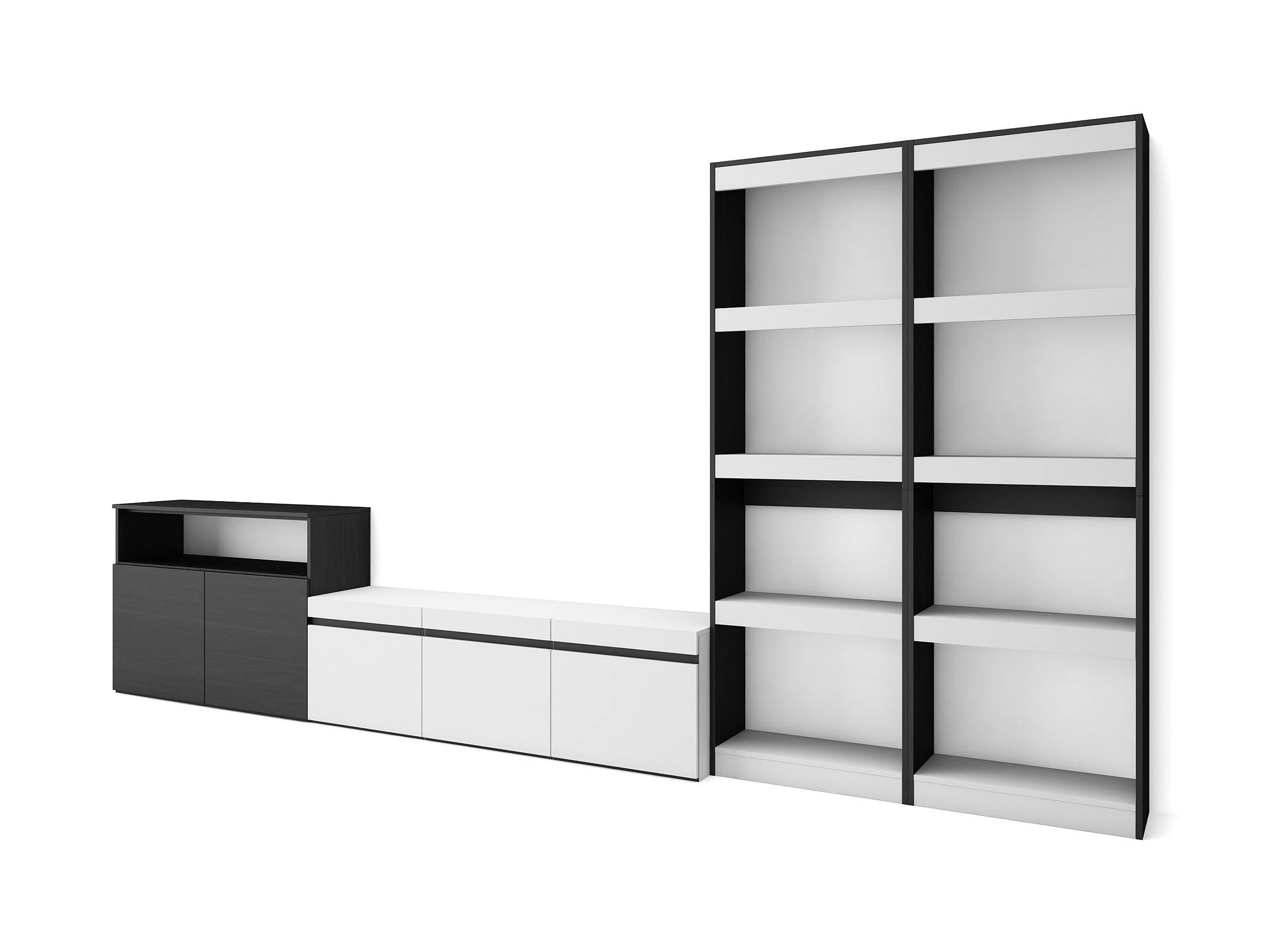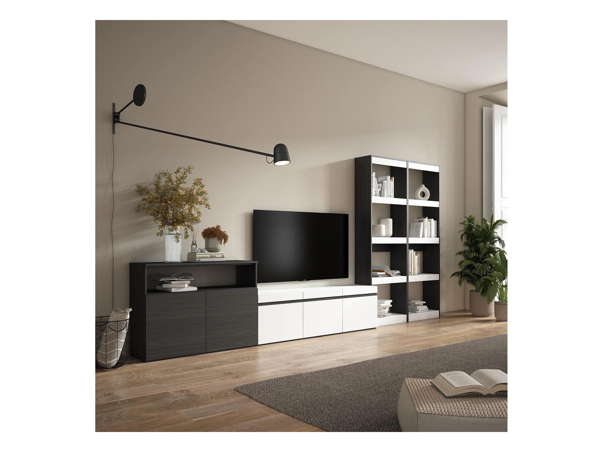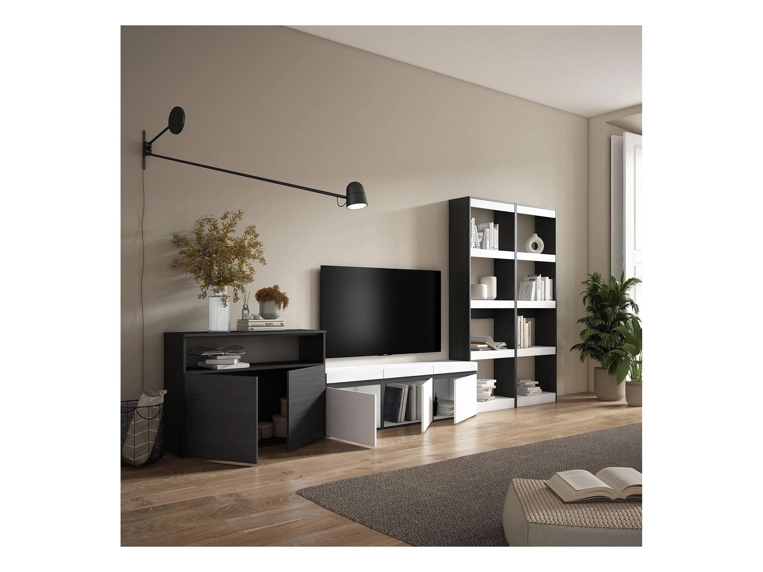 Ensemble Meuble TV, 370x186x35cm, Pour les TV jusqu'à 65", Salon Complet, Blanc et noir
