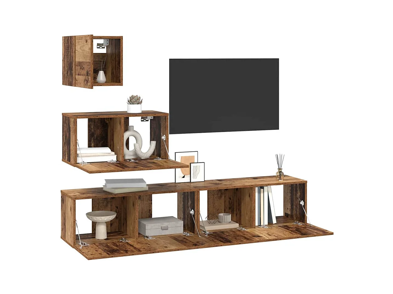 Meubles TV muraux 4 pcs vieux bois bois d'ingénierie