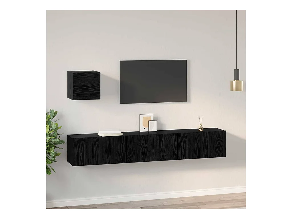 Ensemble meuble TV 3 pièces Chêne noir Bois d'ingénierie