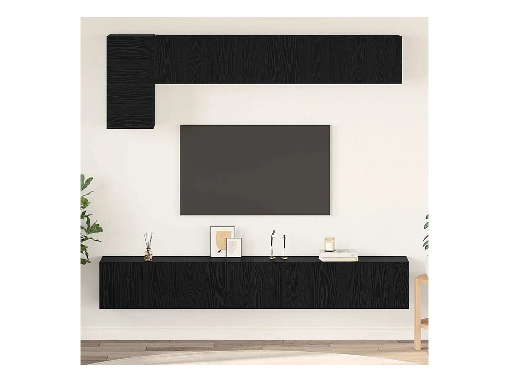 Meuble TV mural 6 pcs Chêne noir Bois d'ingénierie