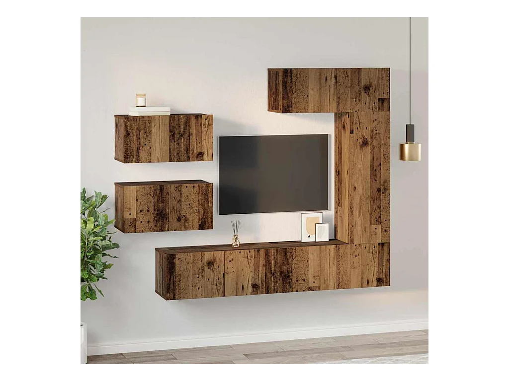 Ensemble de meuble TV mural 5 pcs vieux bois bois d'ingénierie