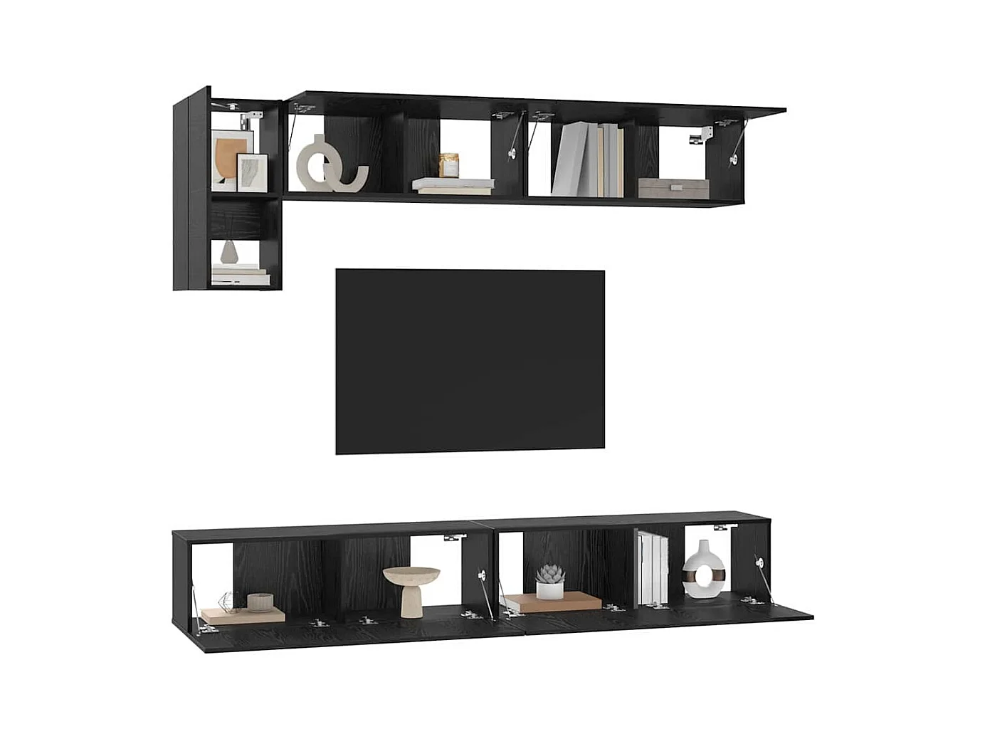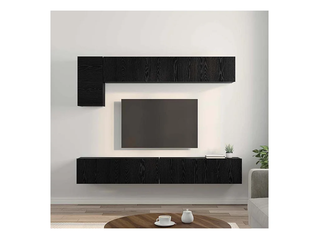 Meuble TV mural 6 pcs Chêne noir Bois d'ingénierie