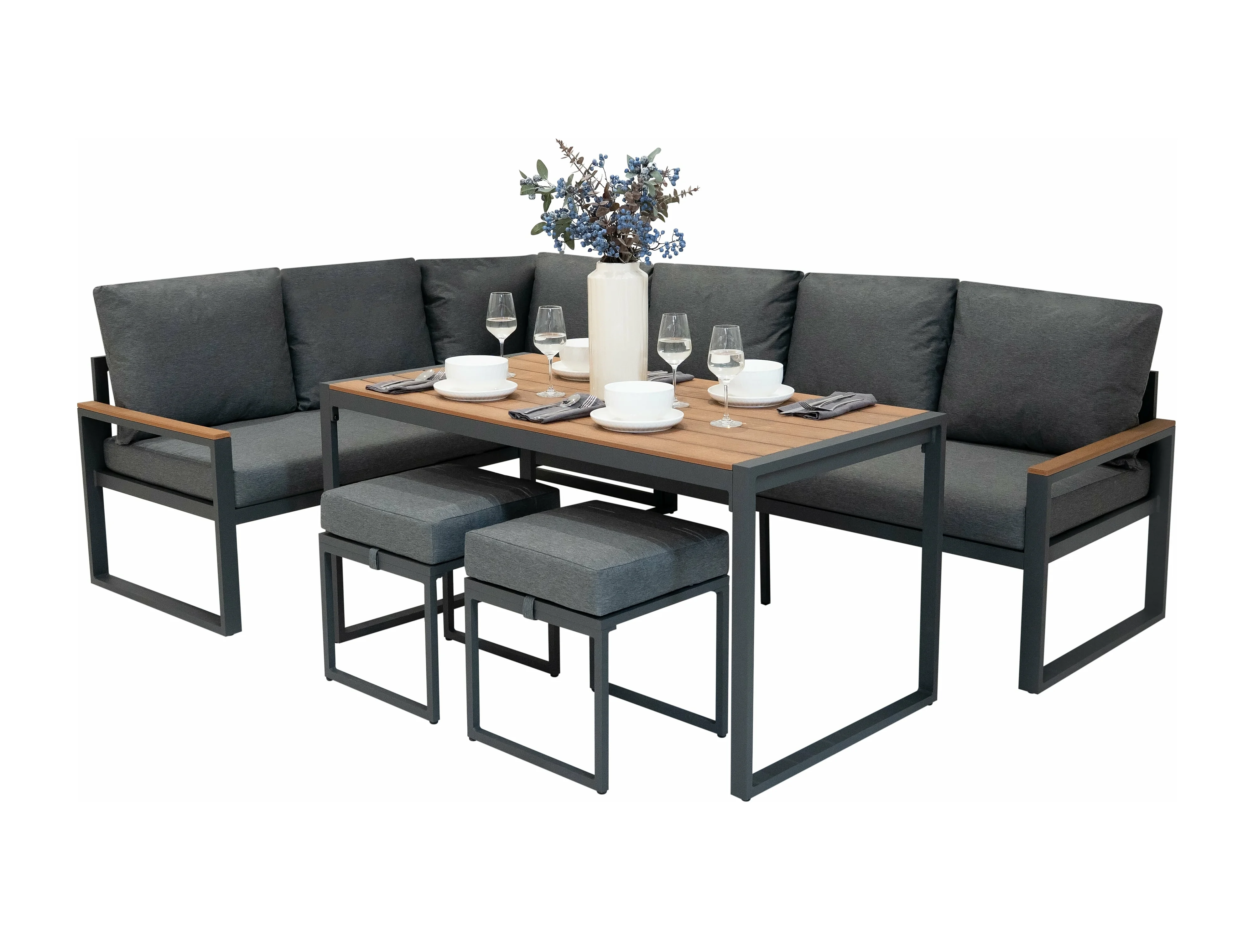 Ensemble Meubles de Jardin En Aluminium Effet Bois 7 Places Salon Extérieur Modulaire En Forme de L & Table (Housse Imperméable INCLUS)