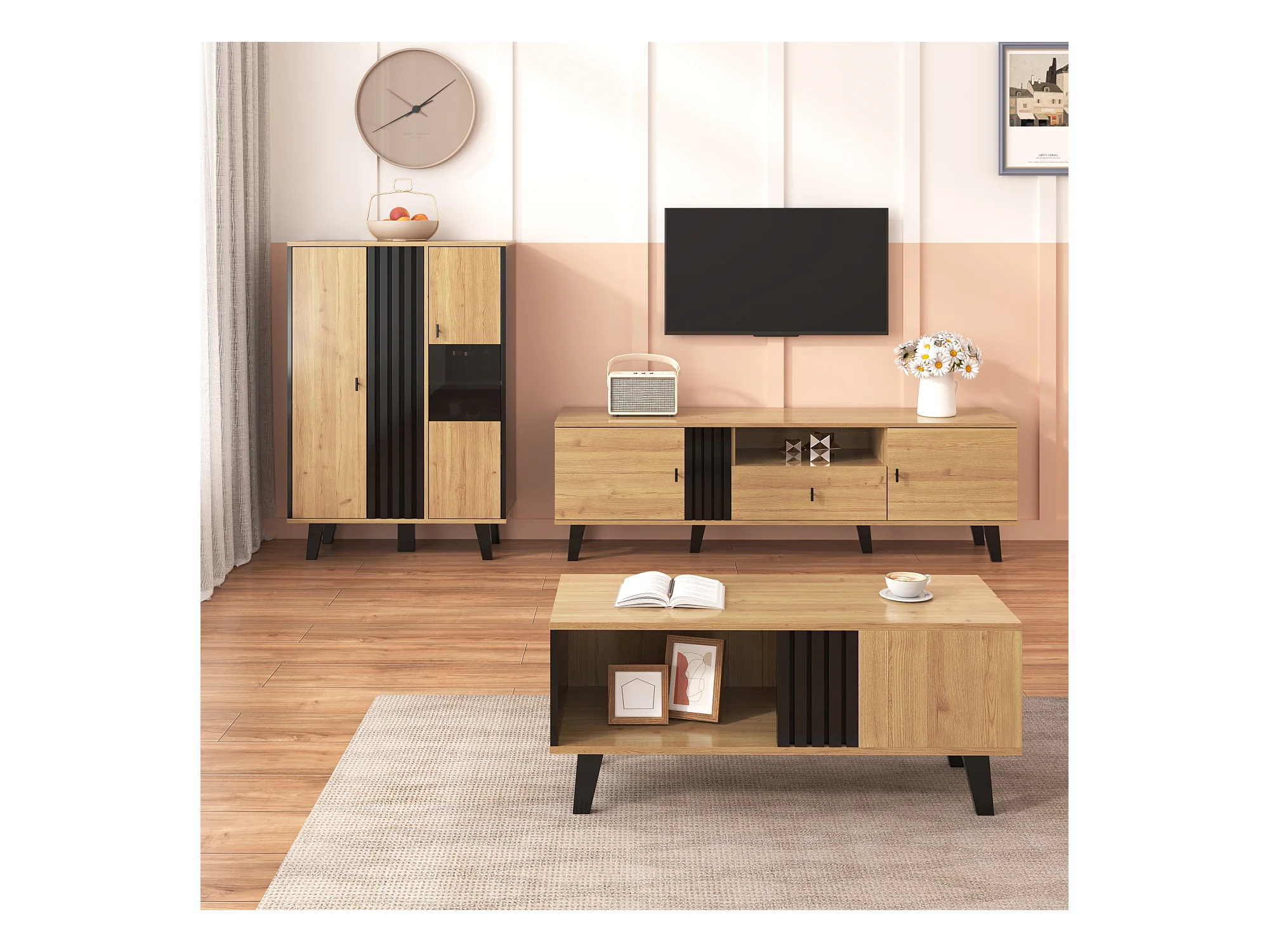 Ensemble meubles salon 3 pièces, table basse, meuble TV et buffet, design moderne en bois et noir(100x60x45 cm, 170x40x50.5 cm, 80x120x40 cm)