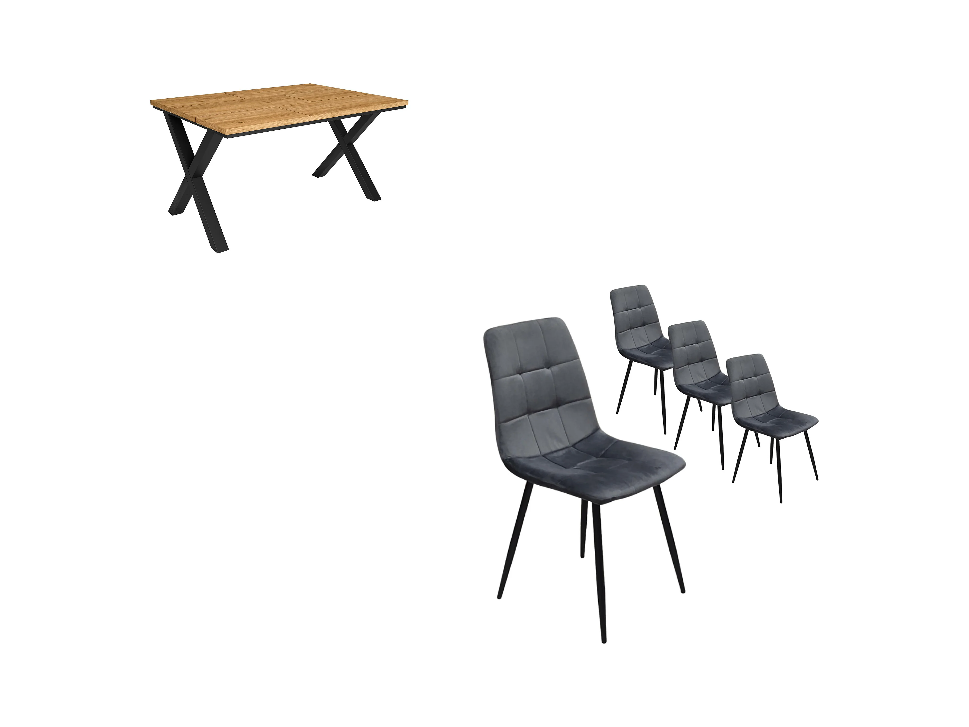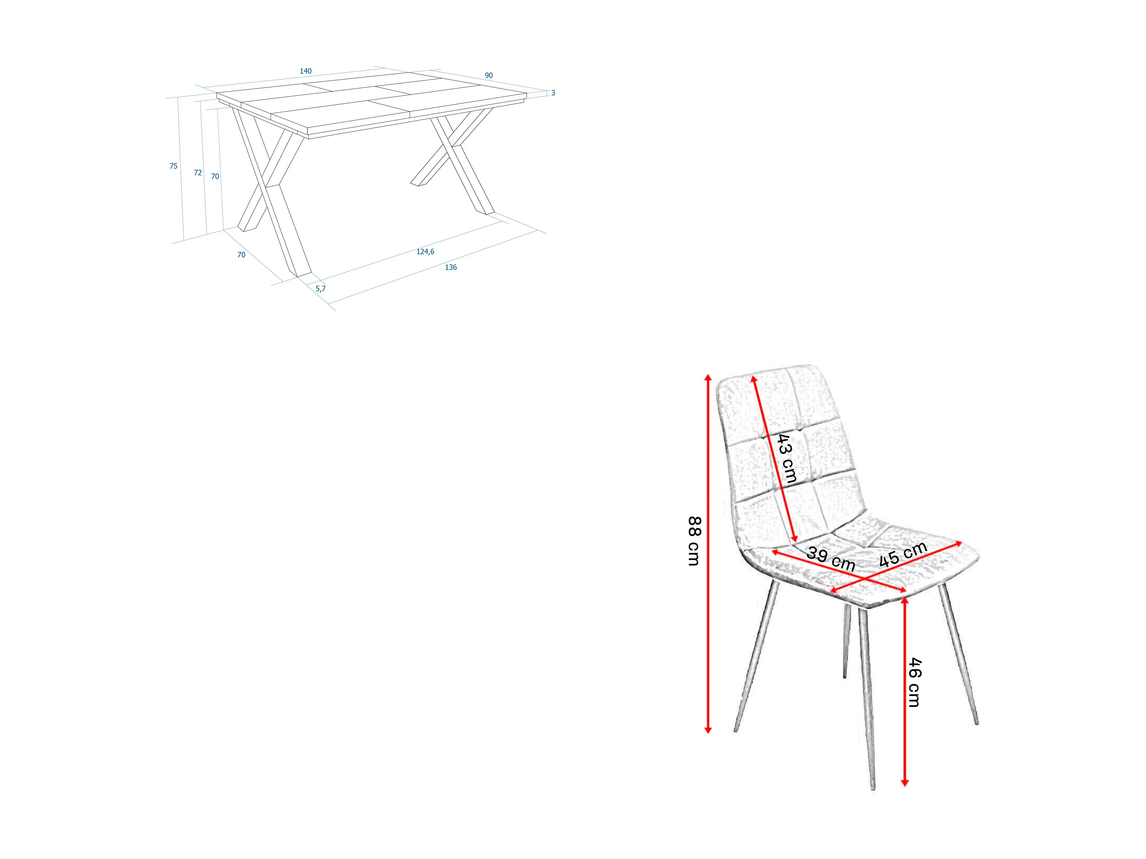 Ensemble Meubles, Table à manger, 140x90x75cm, Chêne, Style industriel, Lot de 4 chaises de salle à manger, Chaise tapissée
