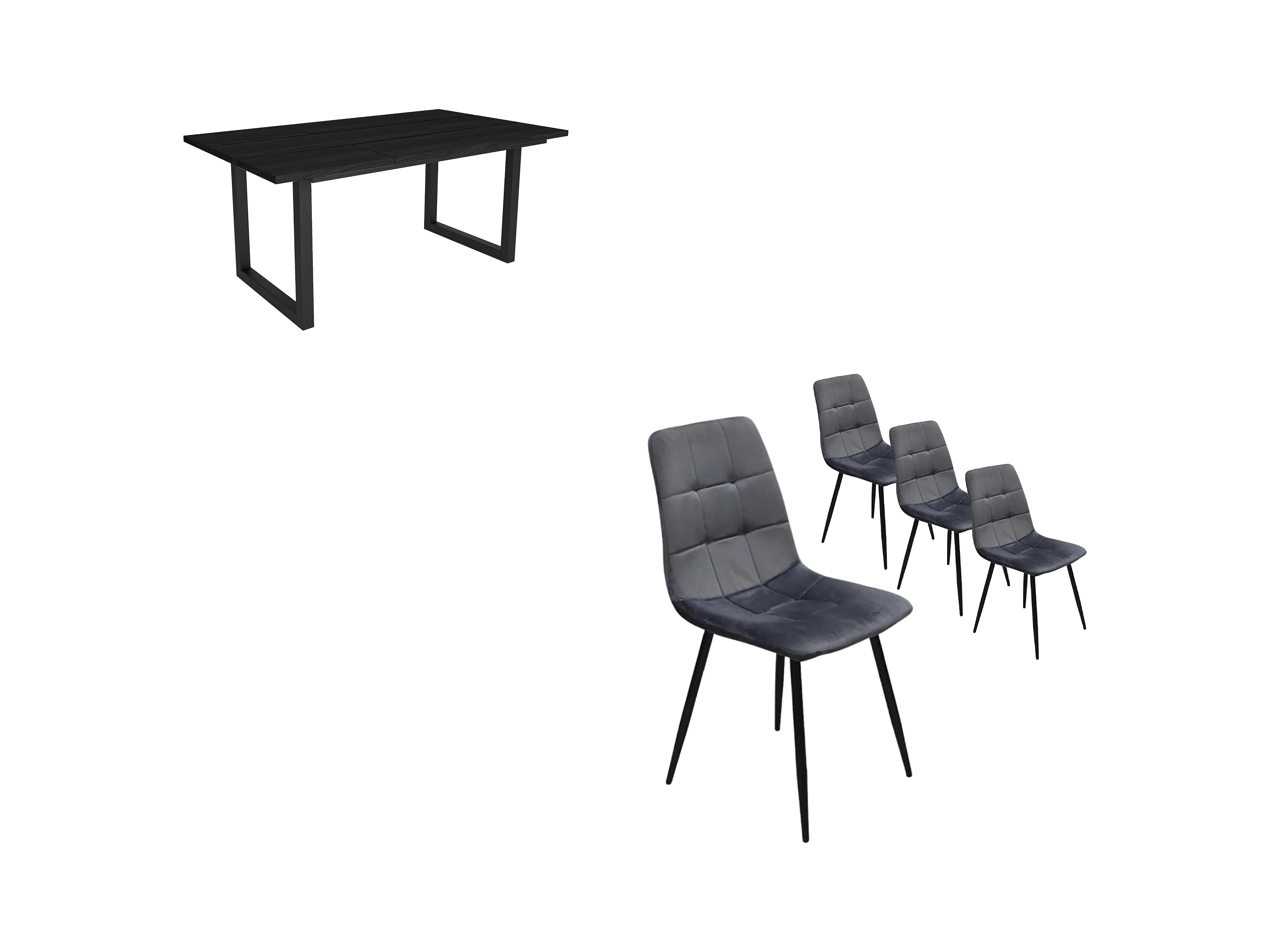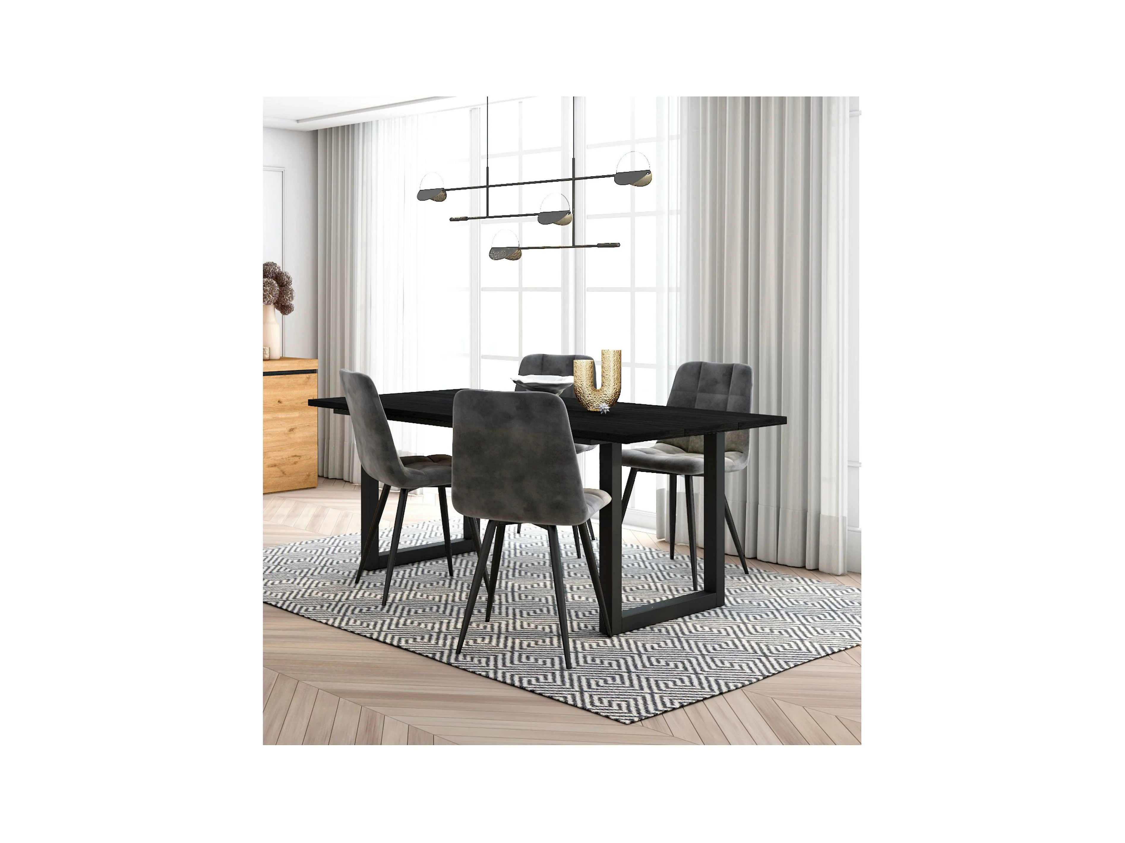 Ensemble Meubles, Table à manger, 167x90x75cm, Noir, Style industriel, Table à manger, Lot de 4 chaises de salle à manger, Chaise tapissée
