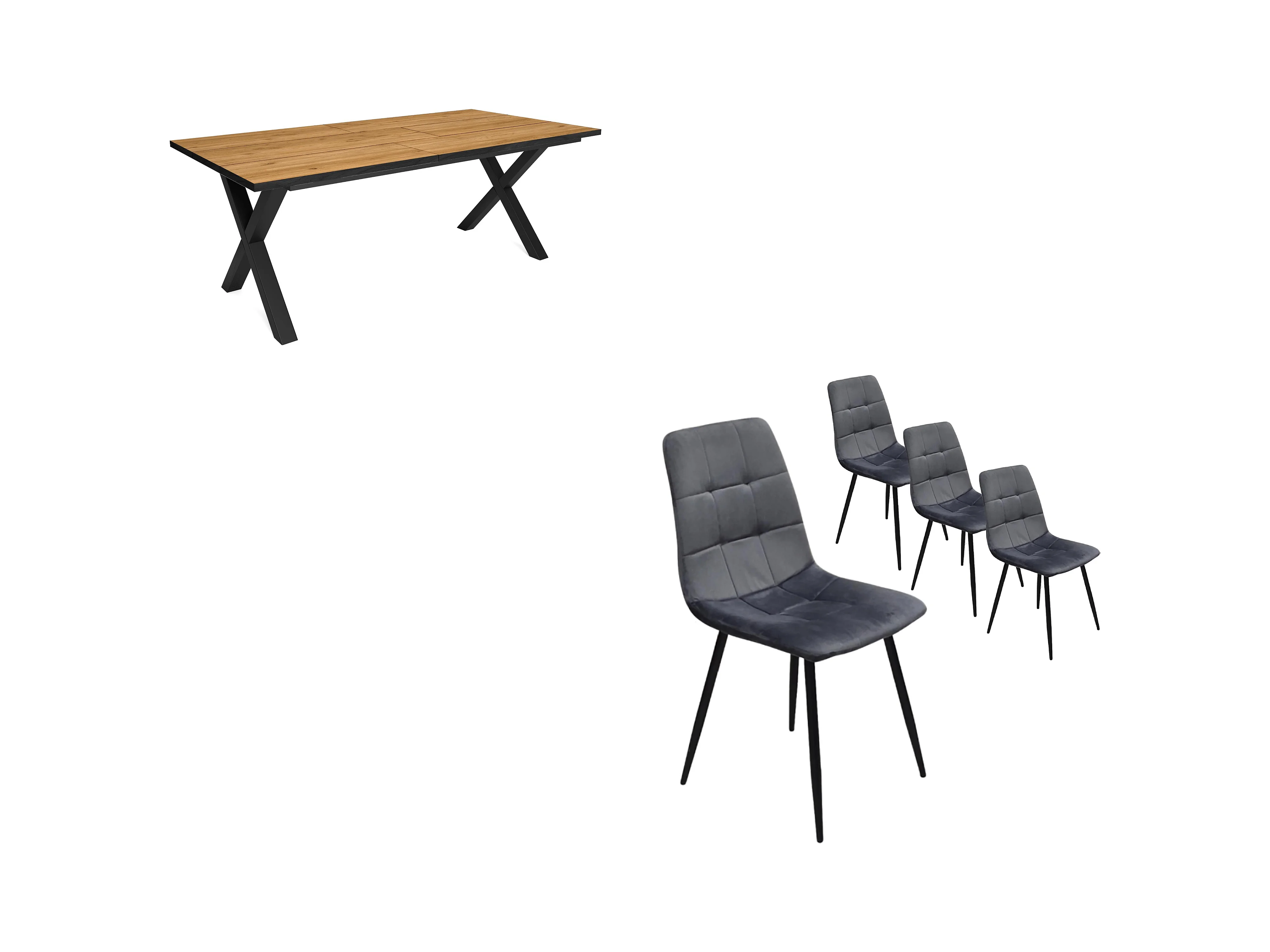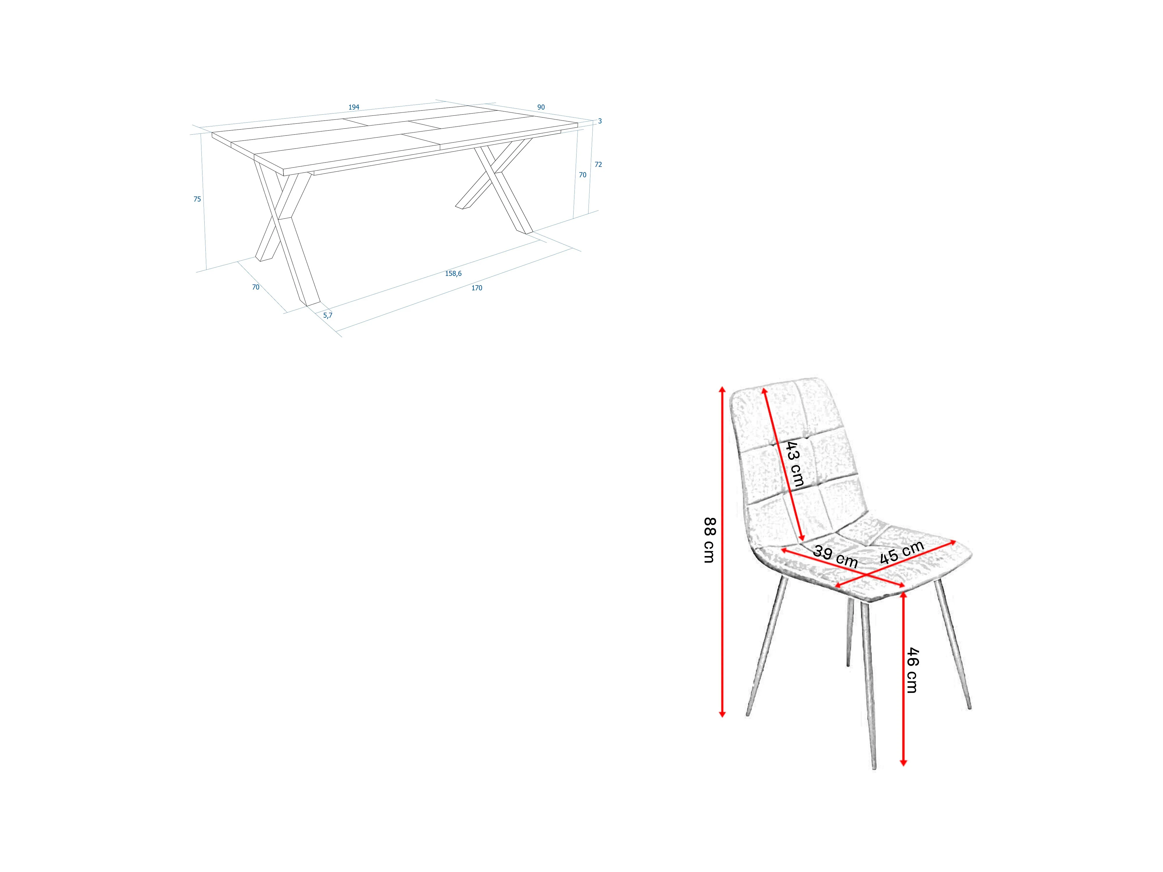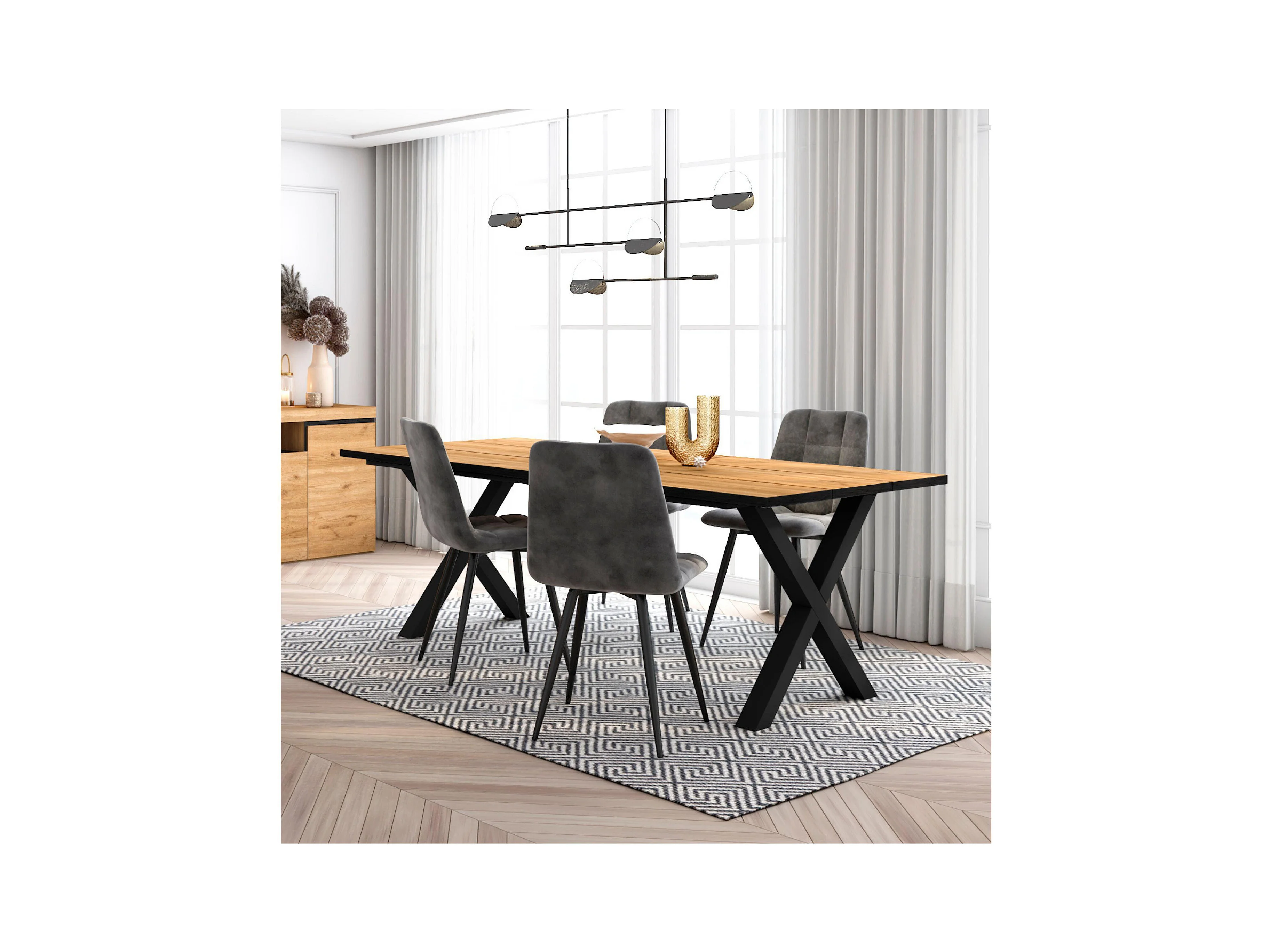 Ensemble Meubles, Table à manger, 194x90x75cm, Chêne et noir, Style industriel, Table à manger, Lot de 4 chaises de salle à manger, Chaise tapissée