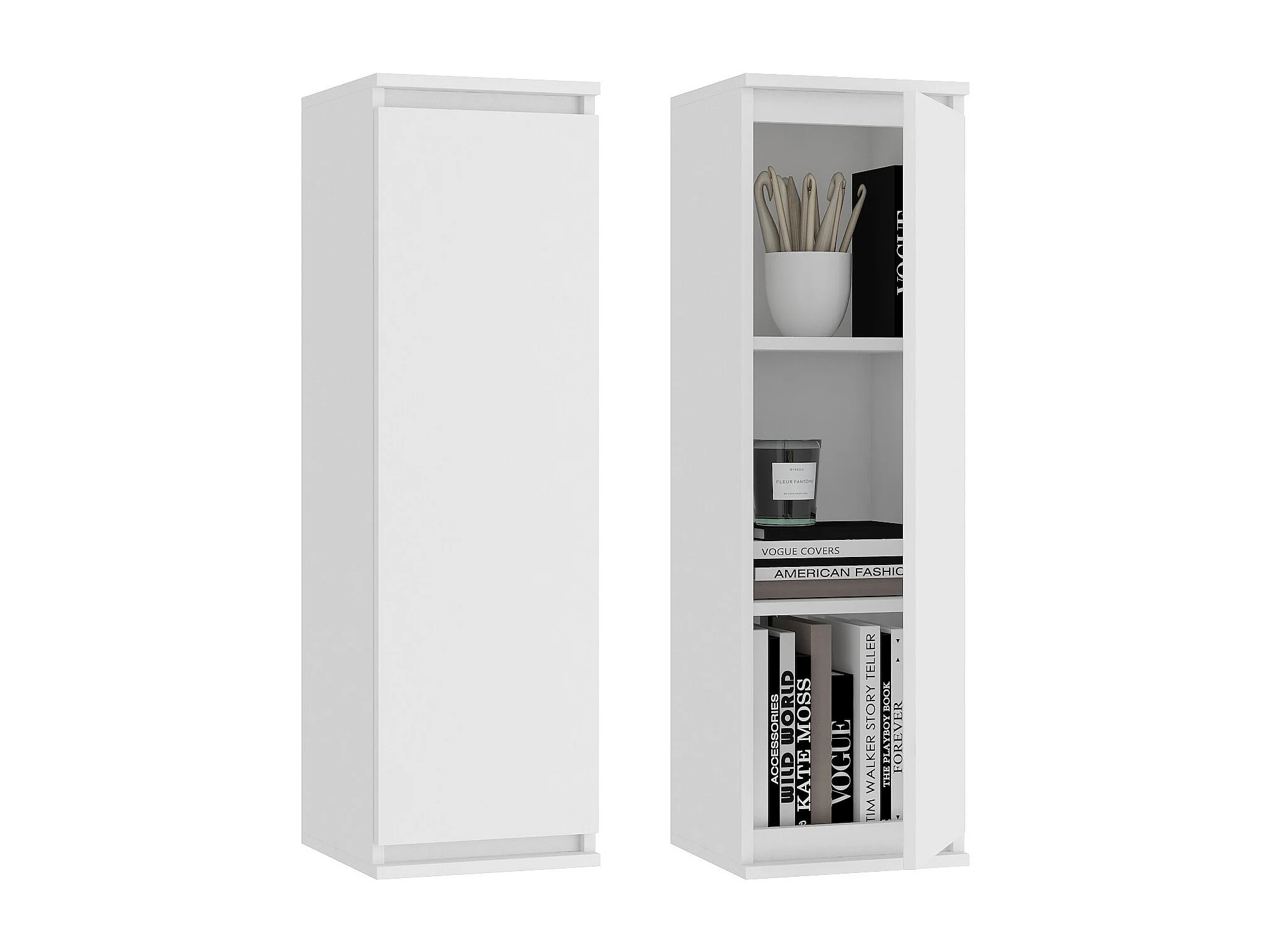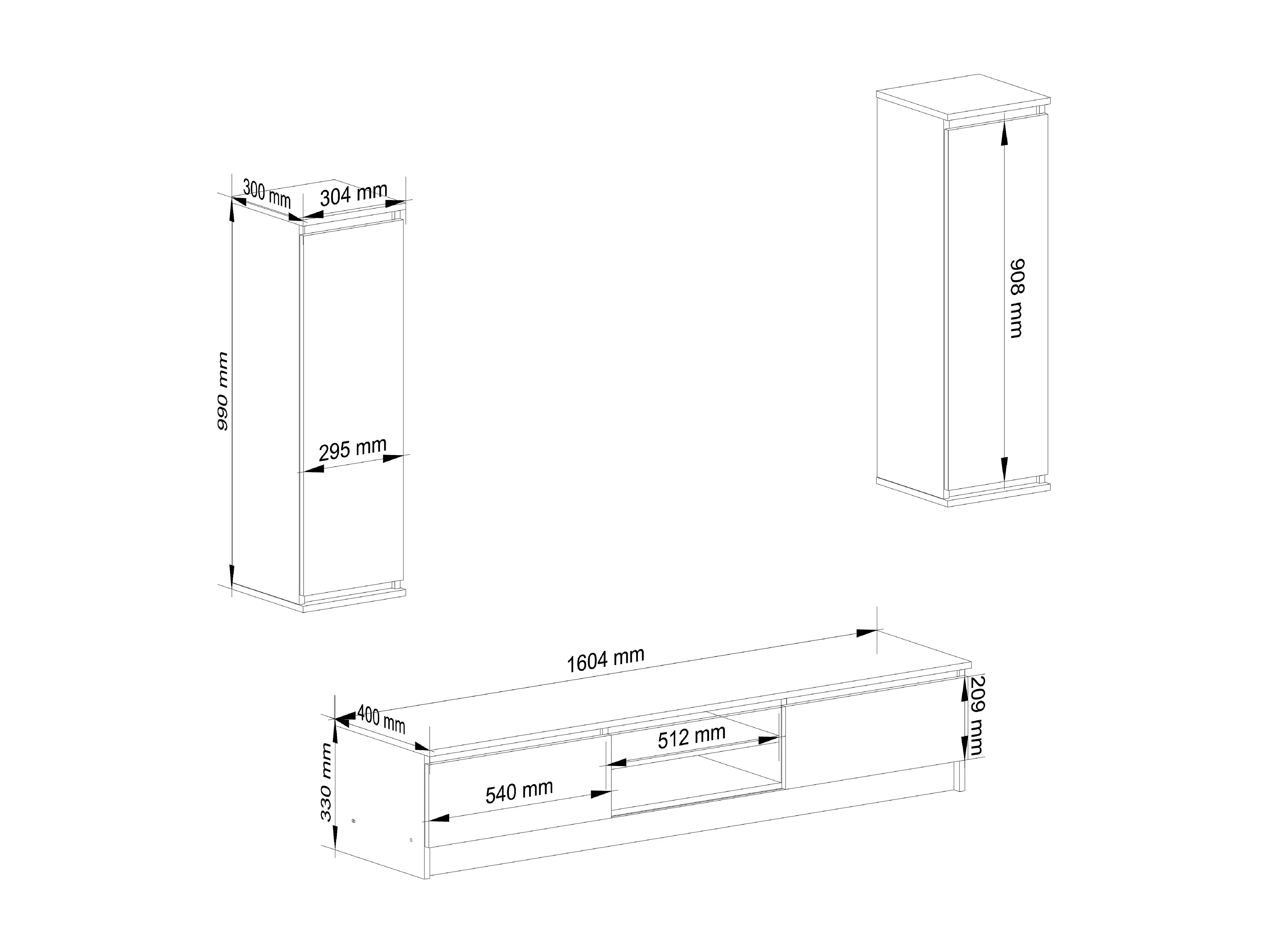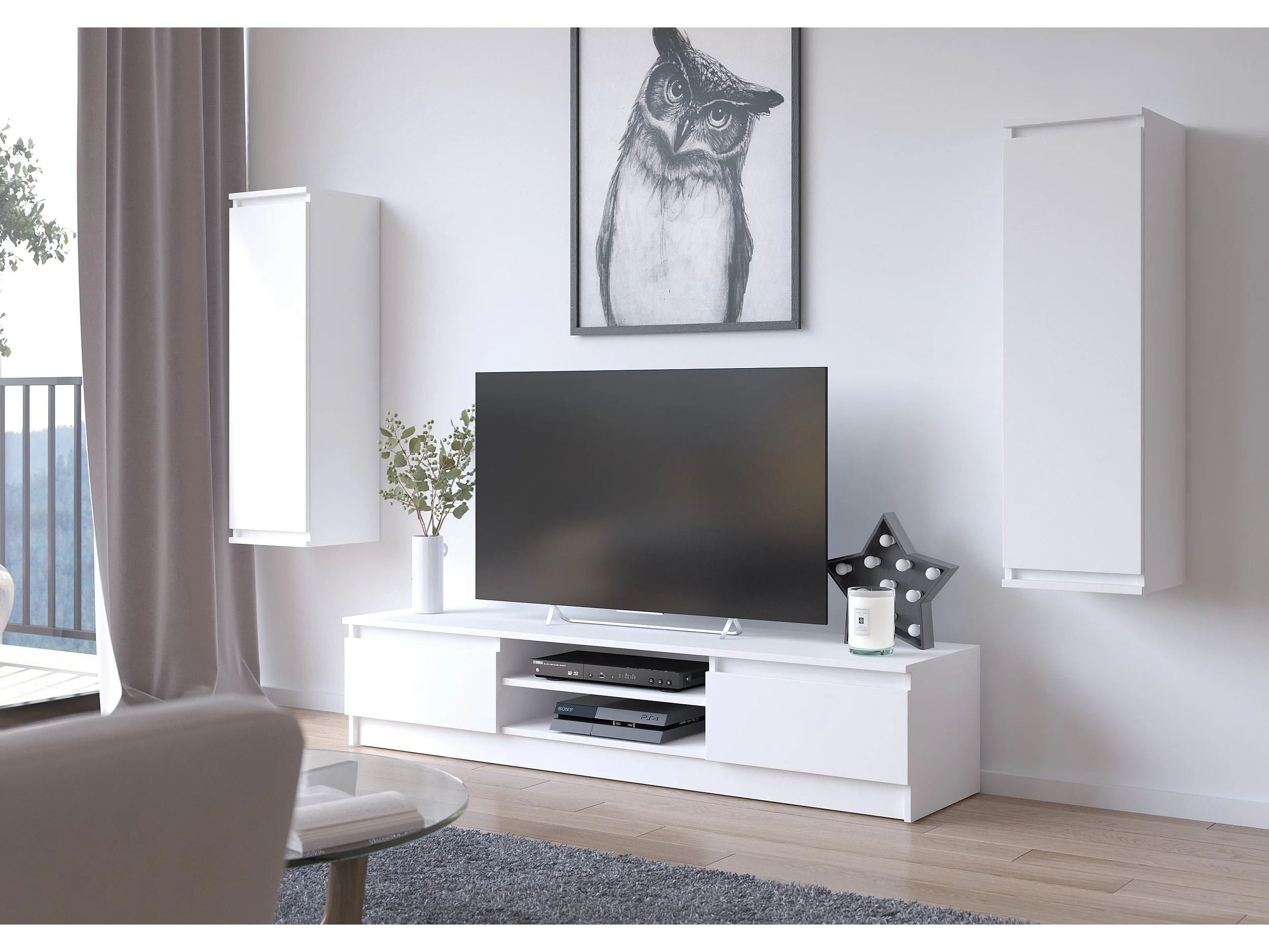 Ensemble mobiler pour le salon AKORD presentoir + meuble TV Blanc 220 cm 4 portes façade Blanche 8 étagères 220x40x140 cm