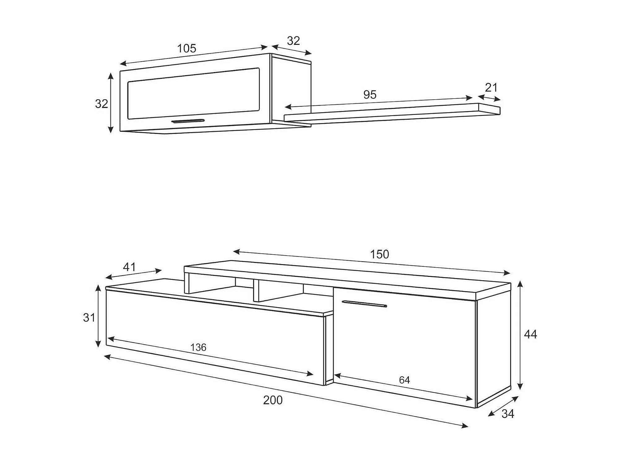 Ensemble mural Chino, meuble TV meuble de salon, Composition de salon réversible, Ensemble de salon d'angle, 200x41h44 cm, Chêne et Blanc Brillant
