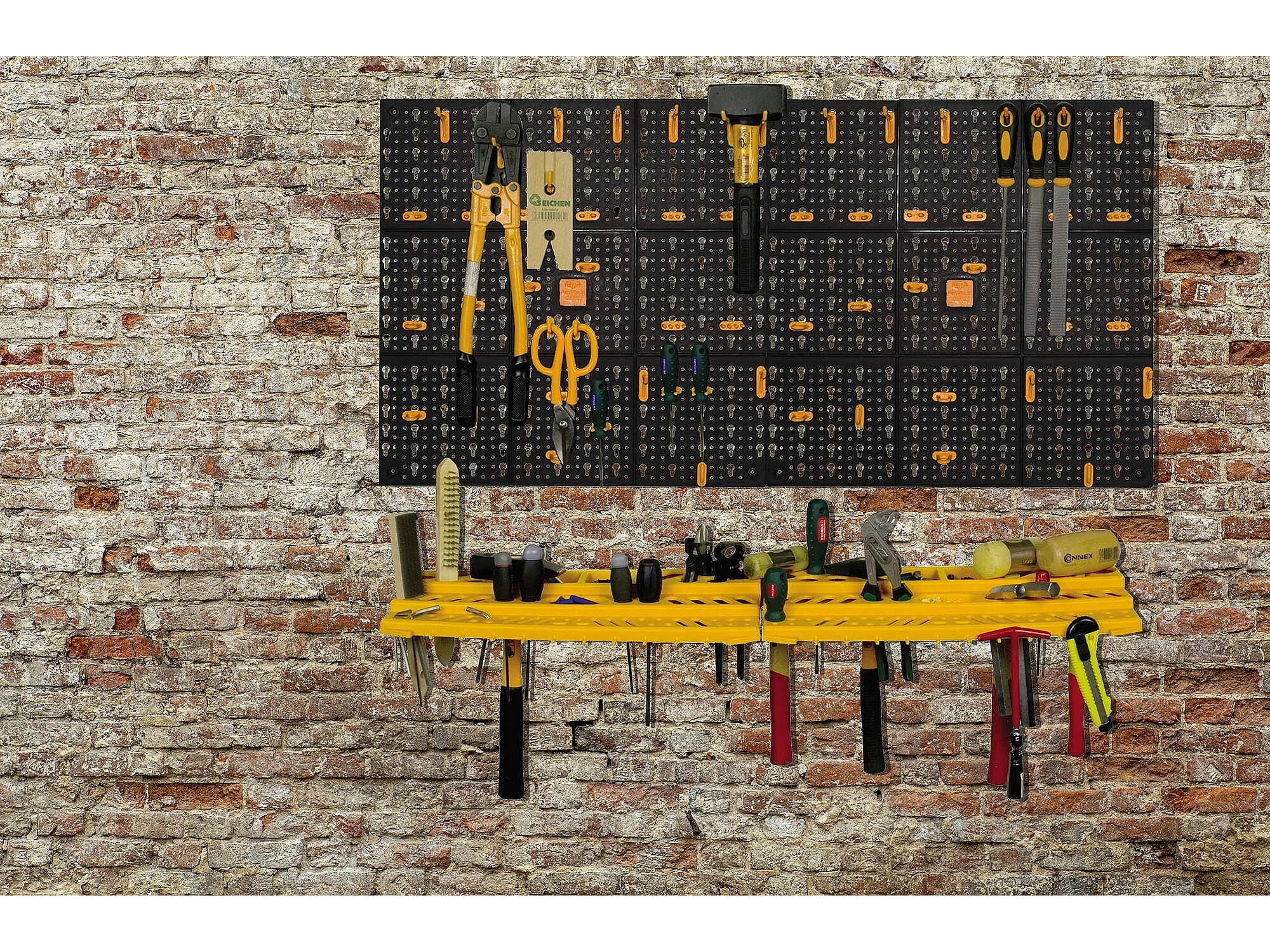 Ensemble porte-outils Floreffe, Ensemble avec 2 panneaux, 2 étagères et 50 crochets, Organisateur mural, 100% Made in Italy, 100x22h50 cm, Noir