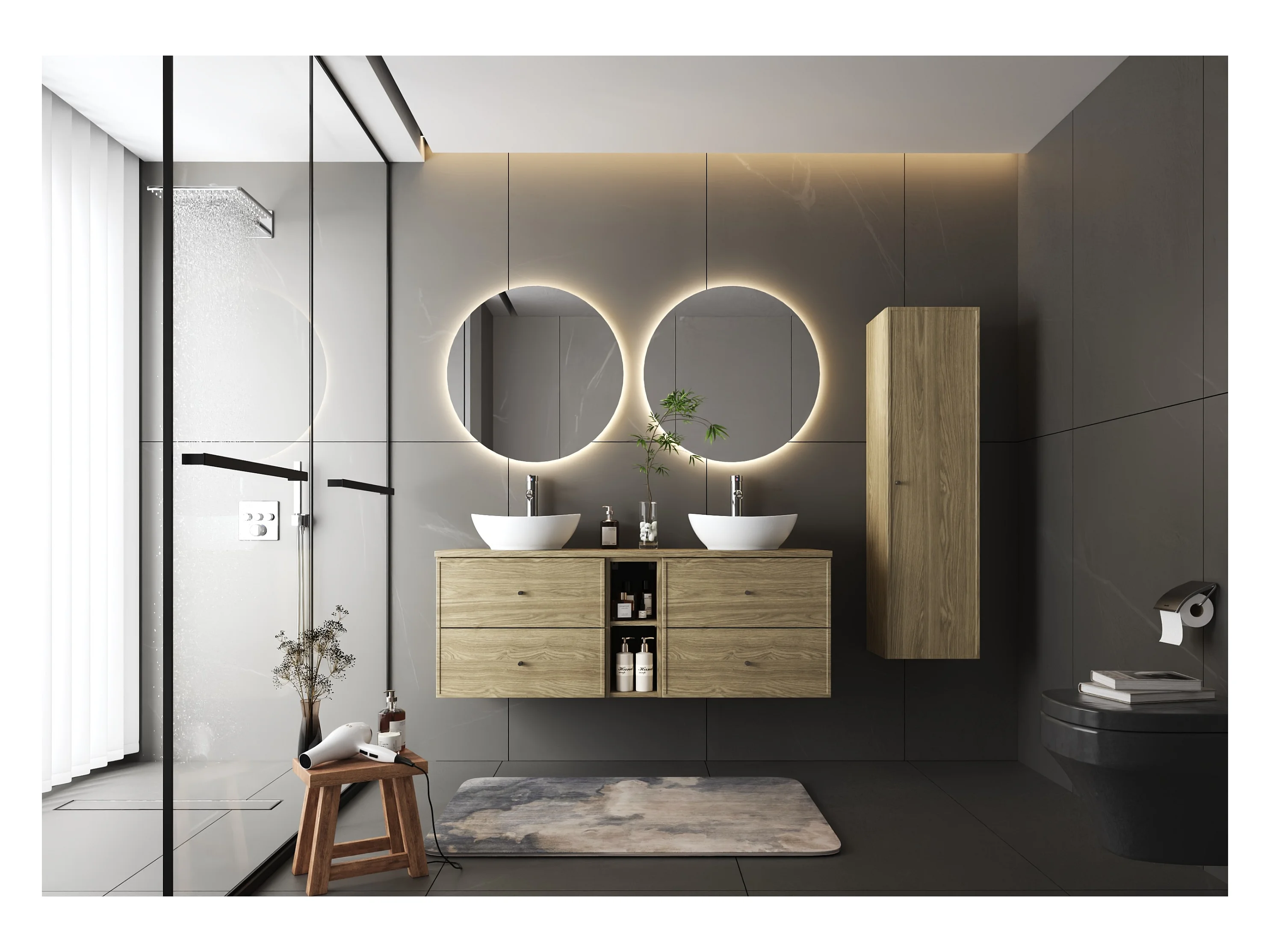 Ensemble pour salle de bain 120 cm Armoire Plan de travail Lavabo Colonne Colonne Chêne huilé Marco