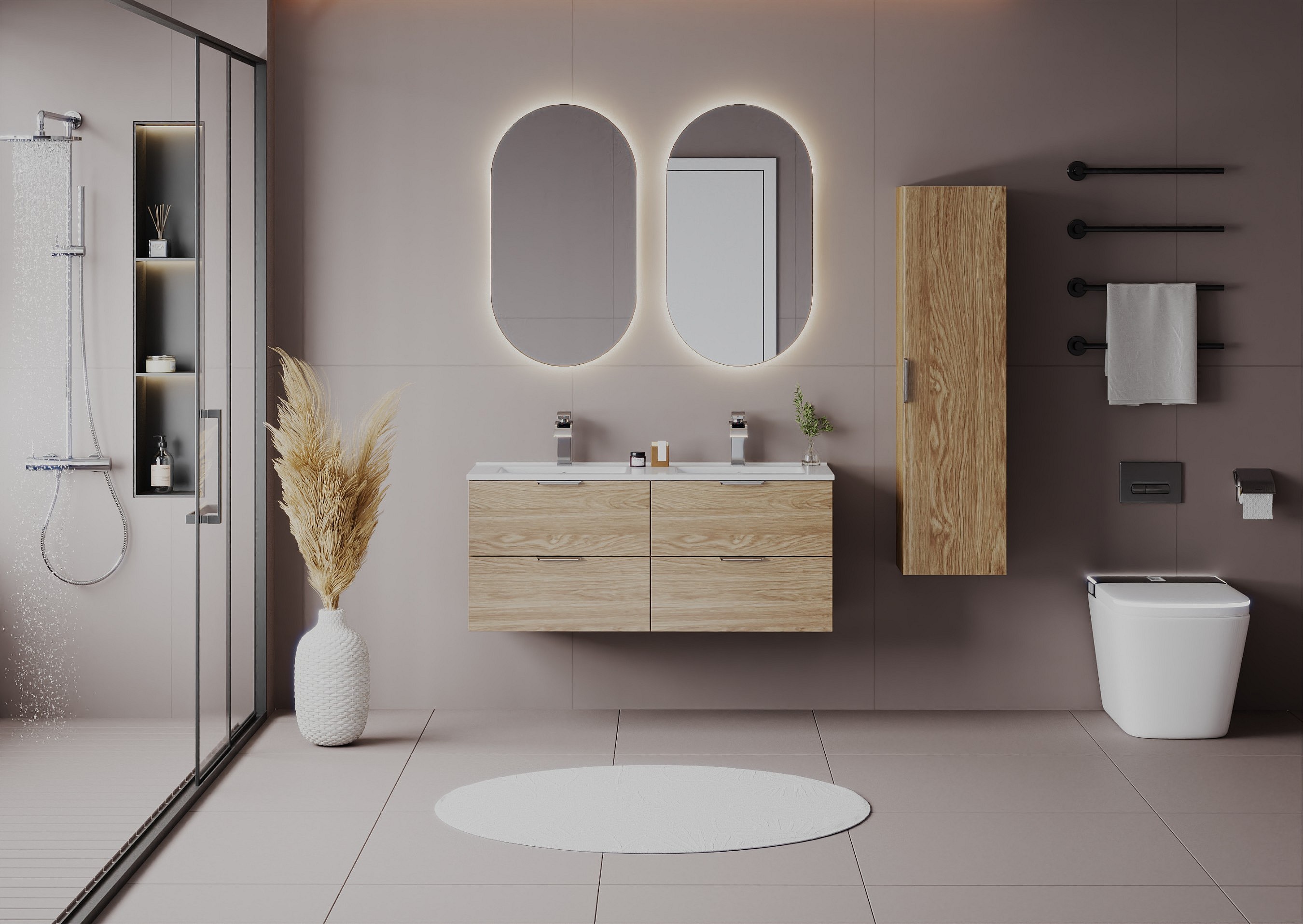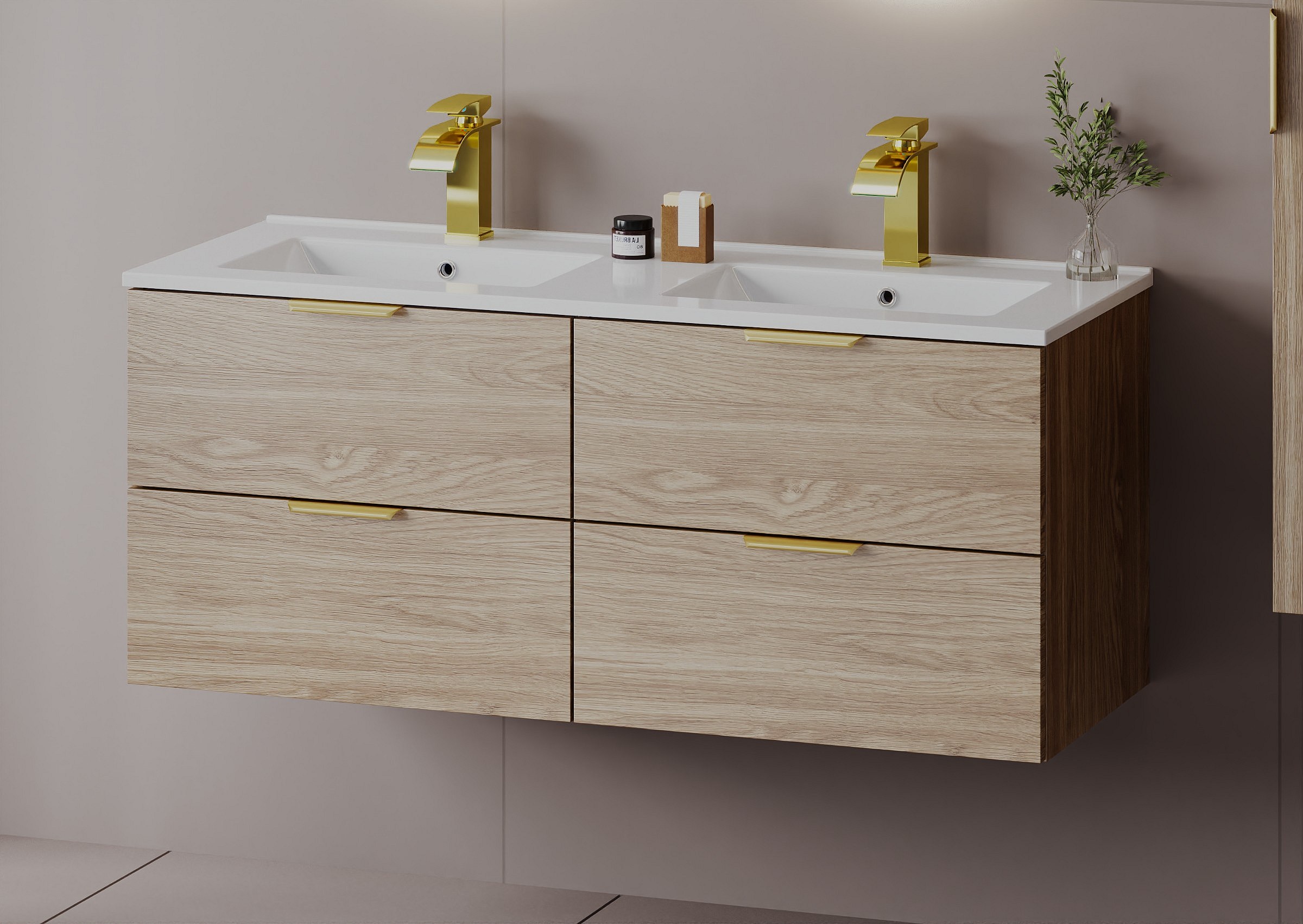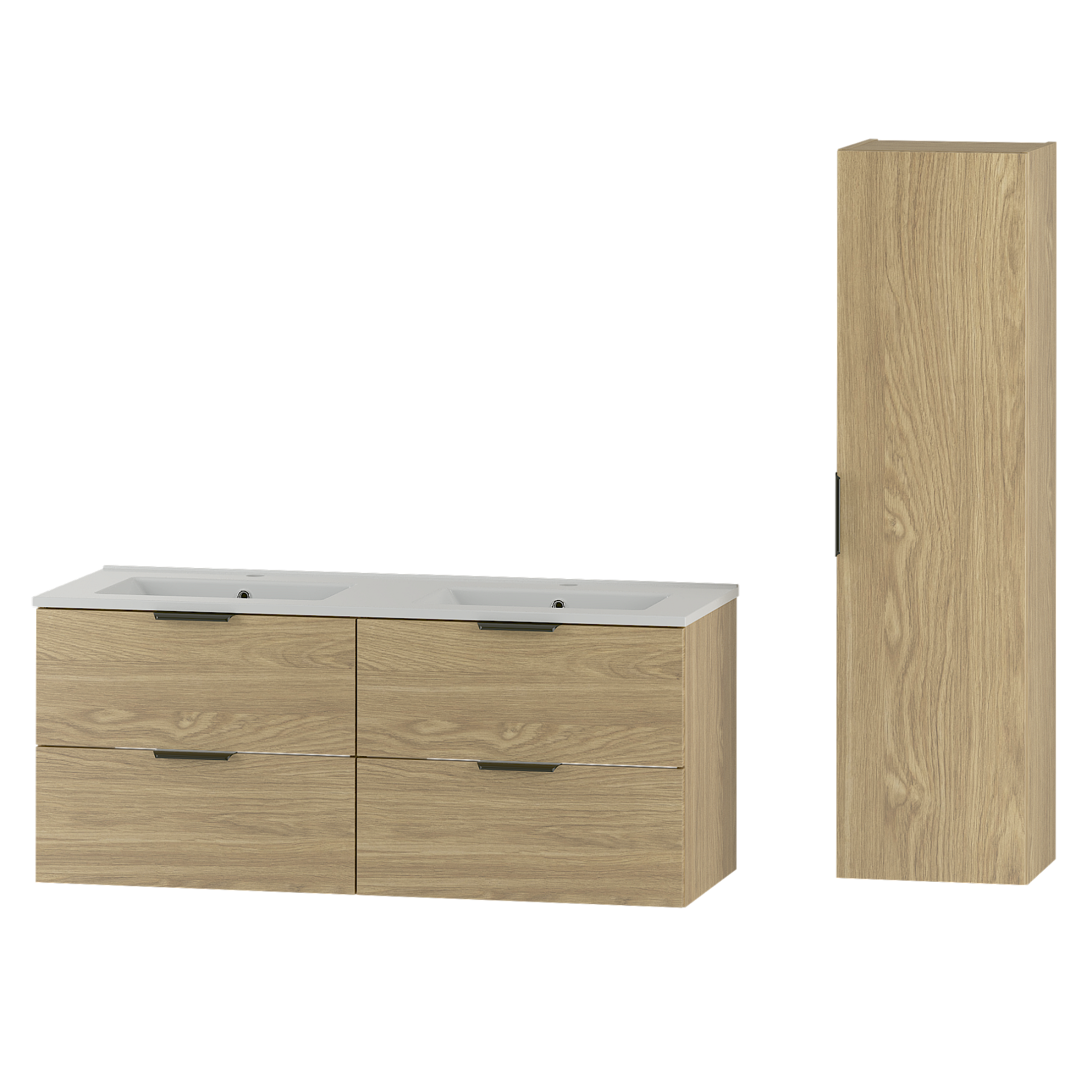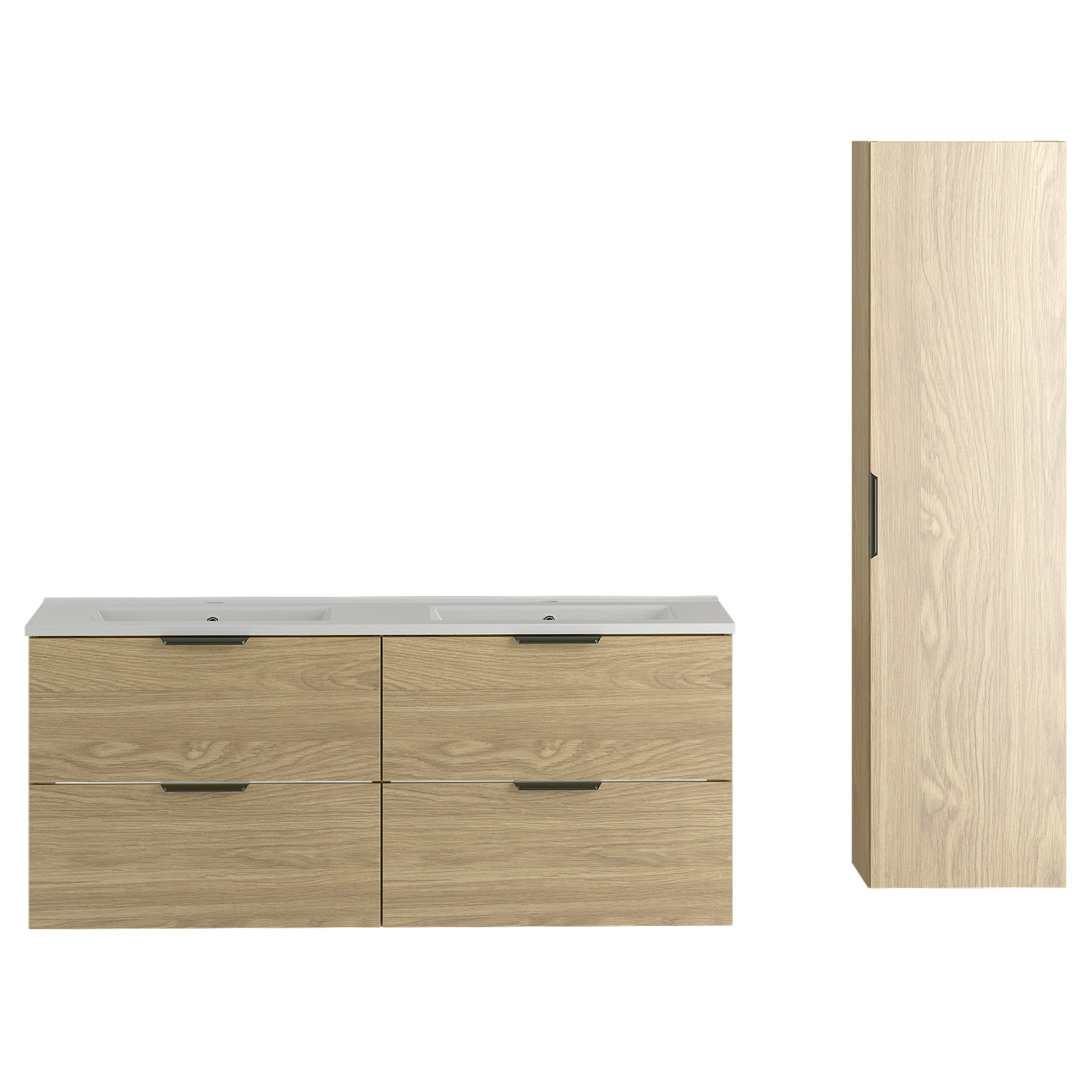 Ensemble pour salle de bain 120 cm Meuble avec lavabo Colonne Colonne Chêne huilé Pile