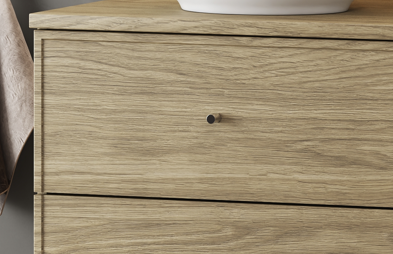 Ensemble pour salle de bain 60 cm Armoire avec plan de travail Lavabo Chêne huilé Marco