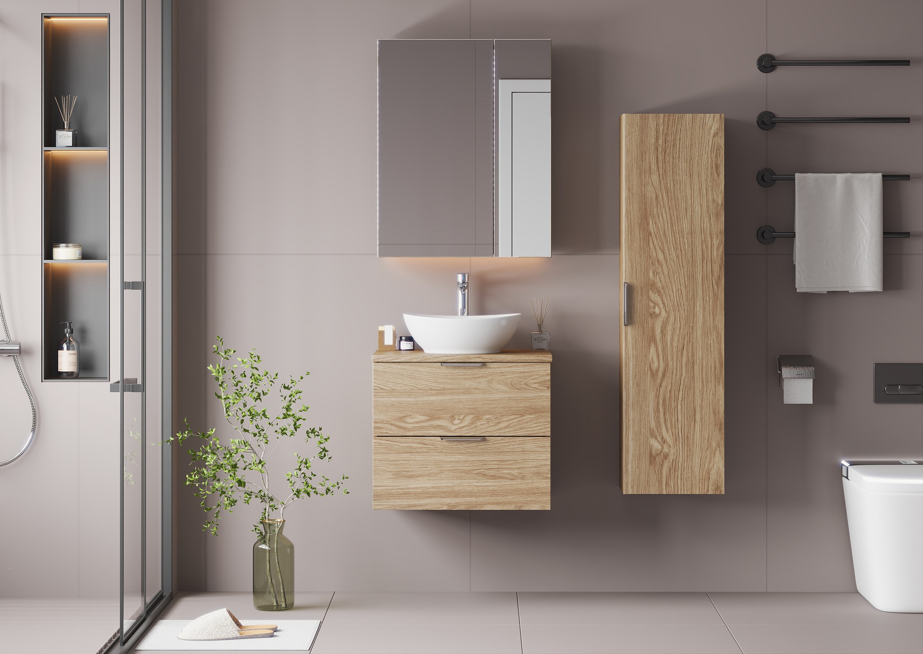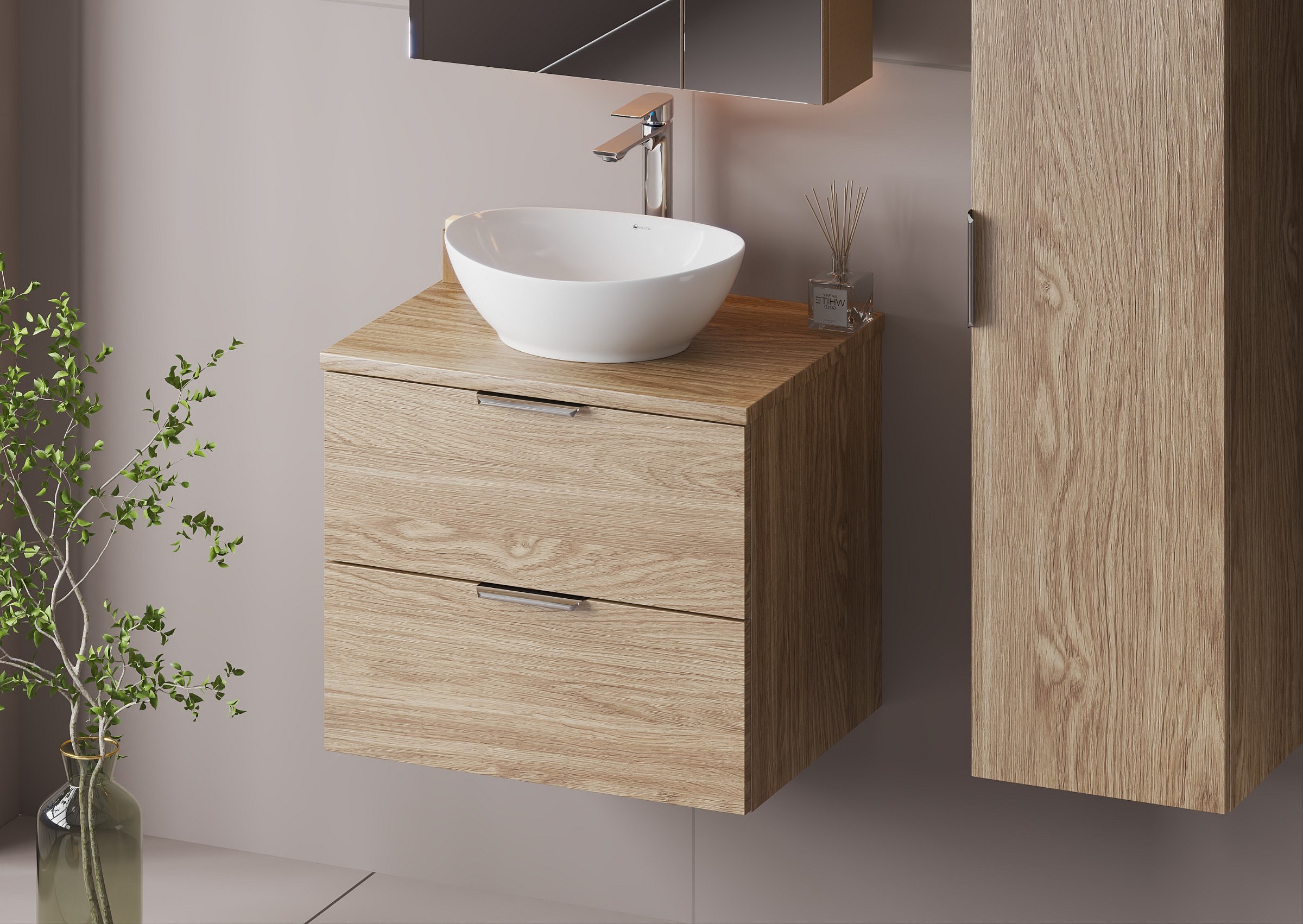 Ensemble pour salle de bain 60 cm Armoire avec plan de travail Lavabo Chêne huilé Pile
