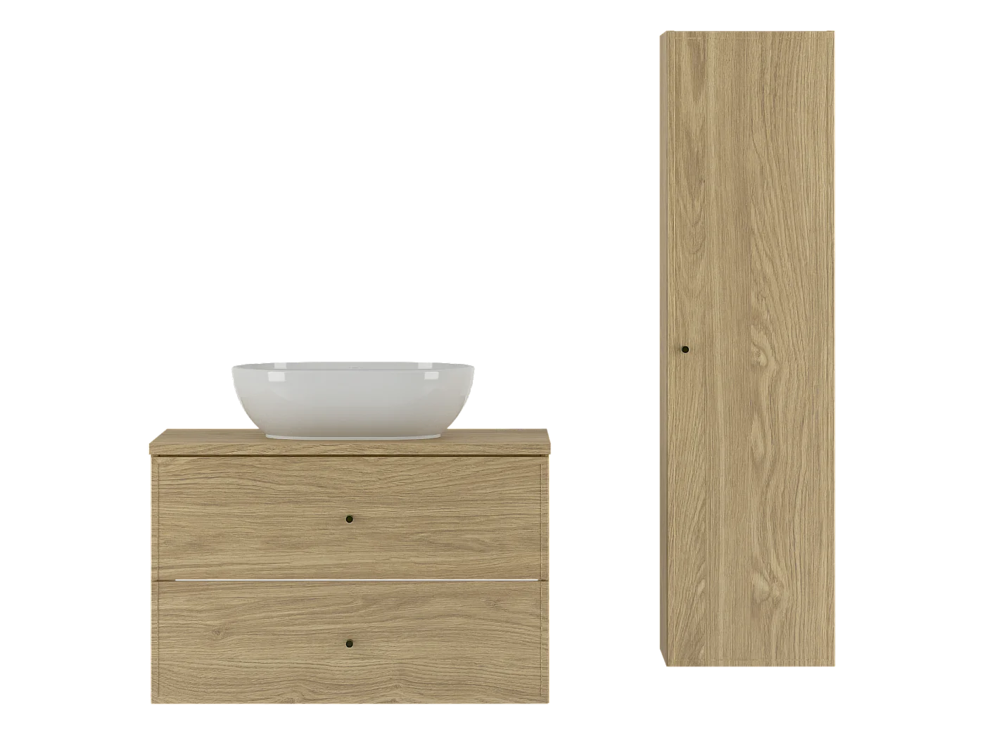 Ensemble pour salle de bain 80 cm Armoire avec plan de travail Lavabo Colonne Chêne huilé Marco