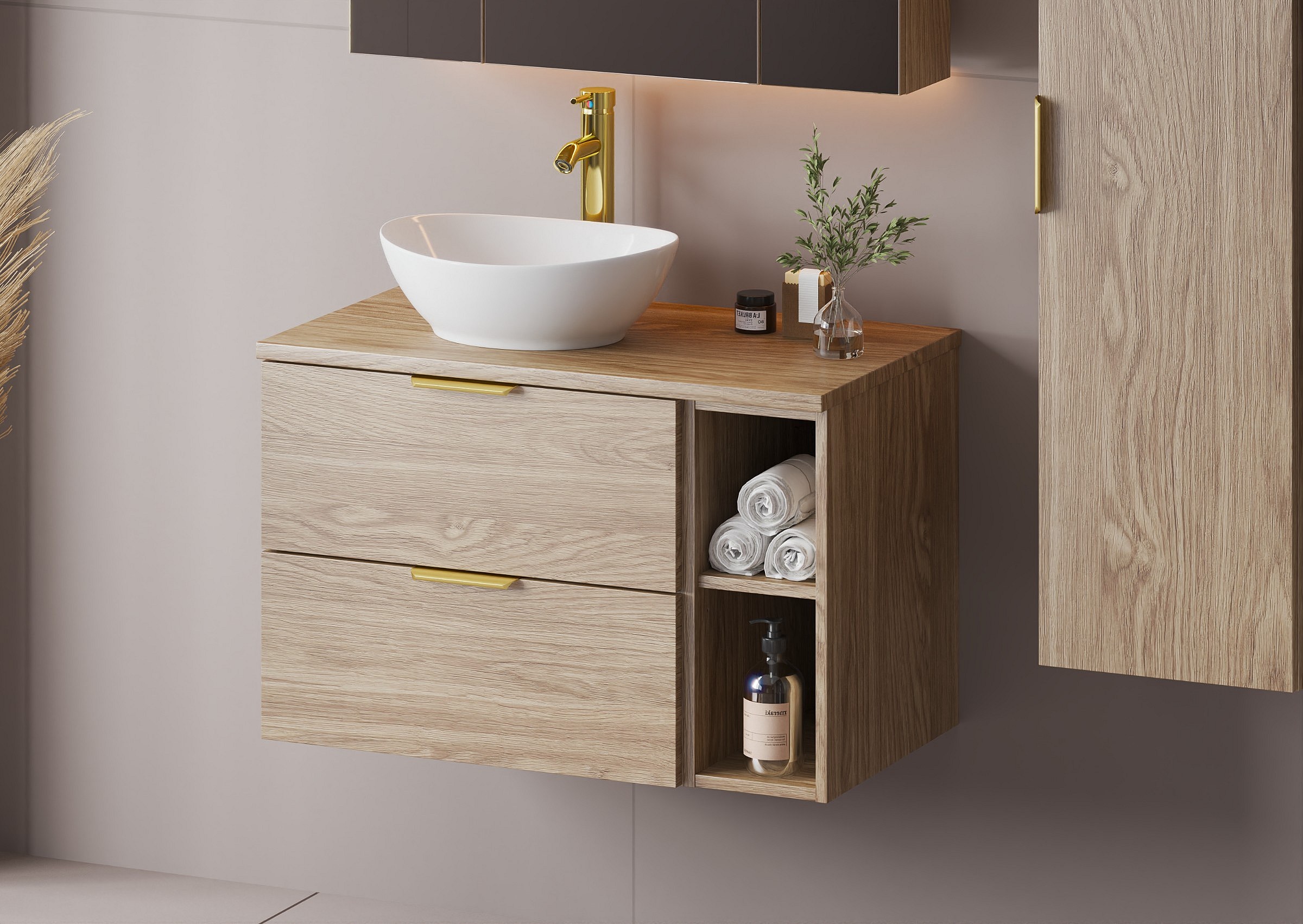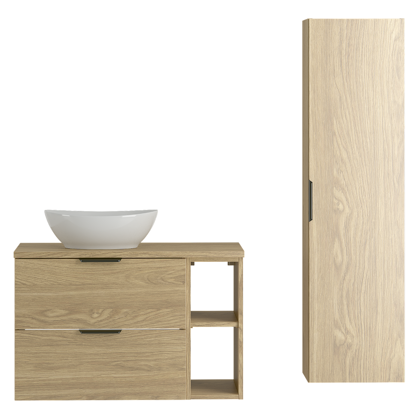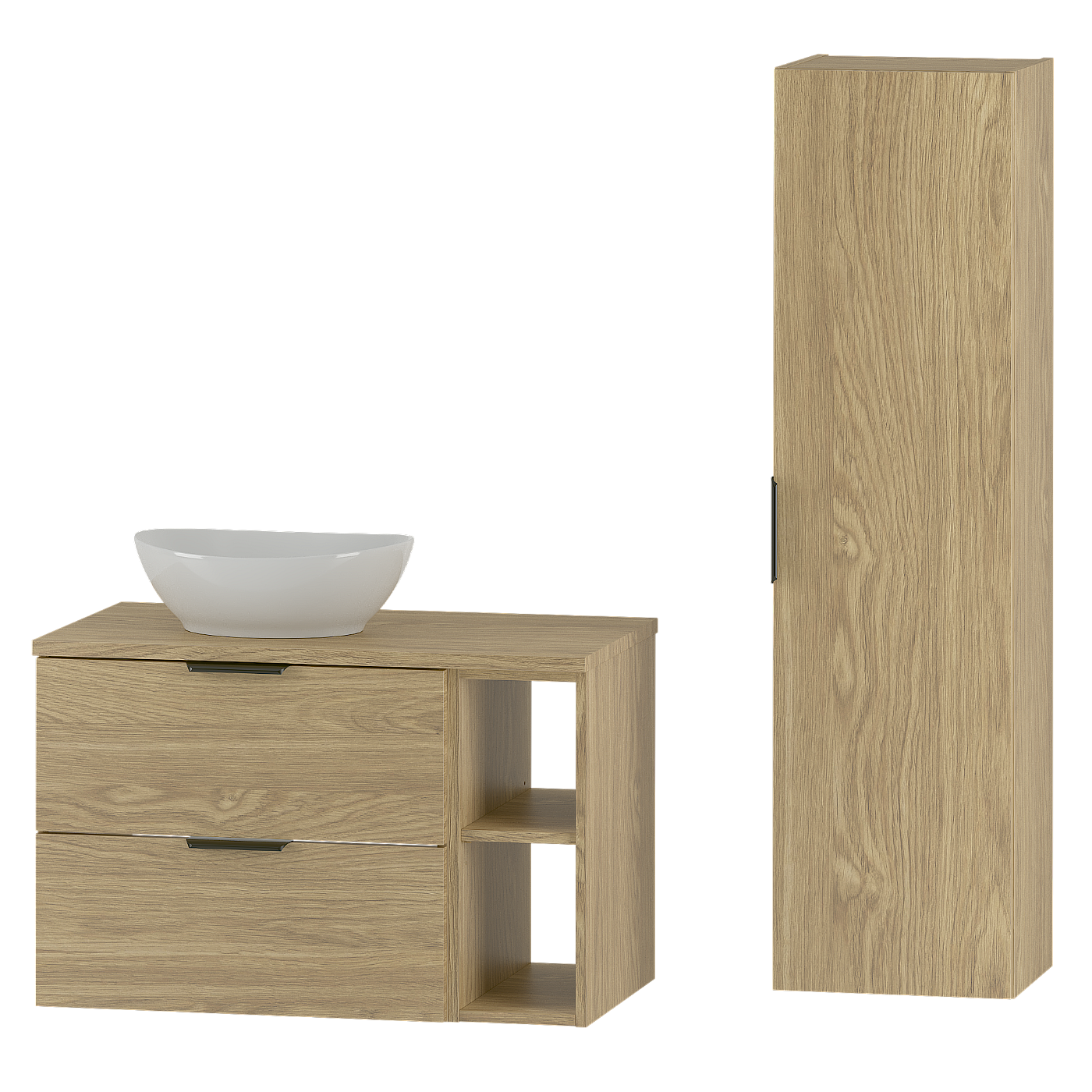 Ensemble pour salle de bain 80 cm Armoire Étagère Plan de travail Lavabo Colonne Chêne huilé Pile