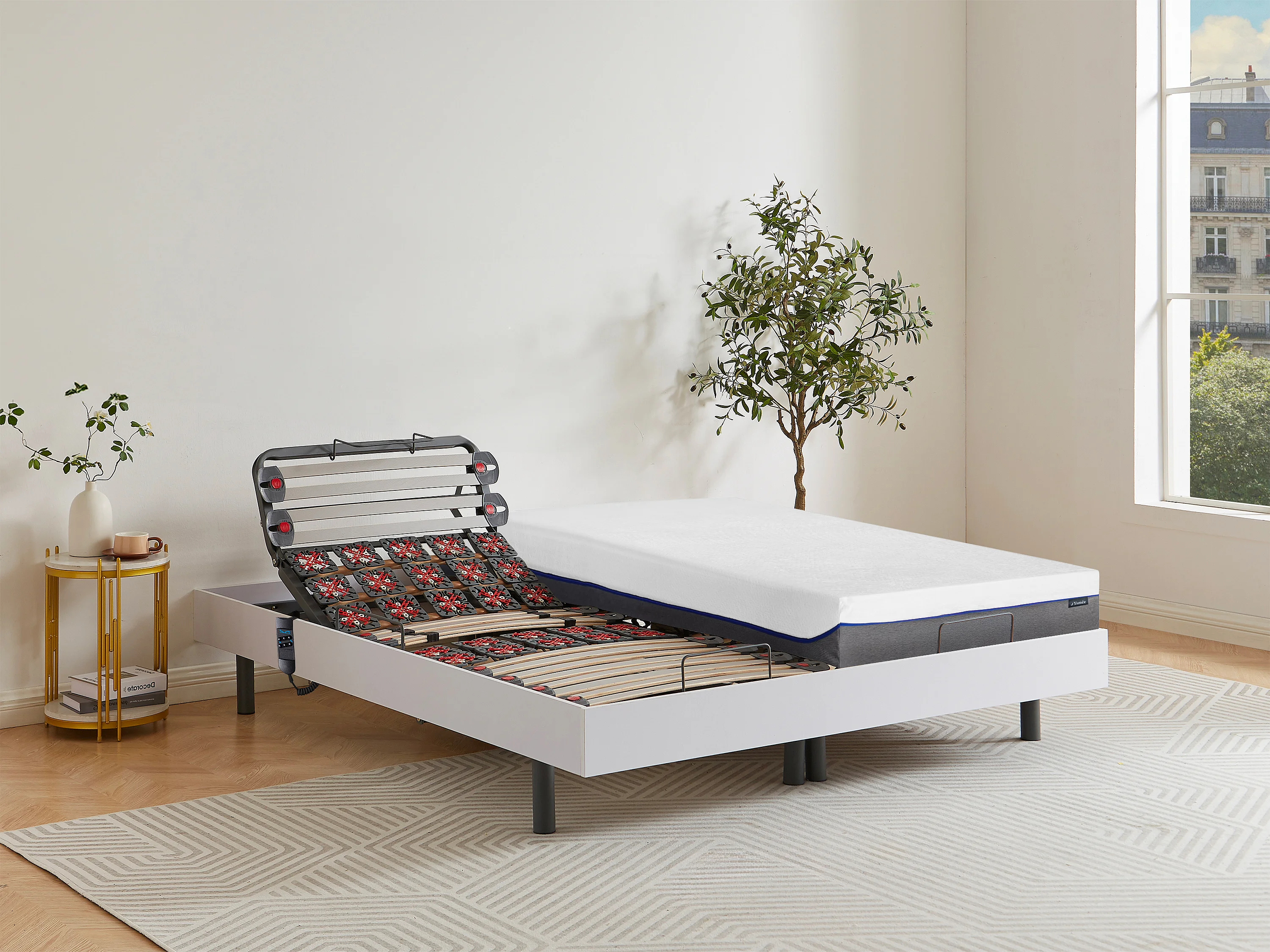 Lit électrique de relaxation lattes et plots + matelas mémoire de forme - 2 x 90 x 200 cm - Blanc - DIONYSOS de YSMÉE