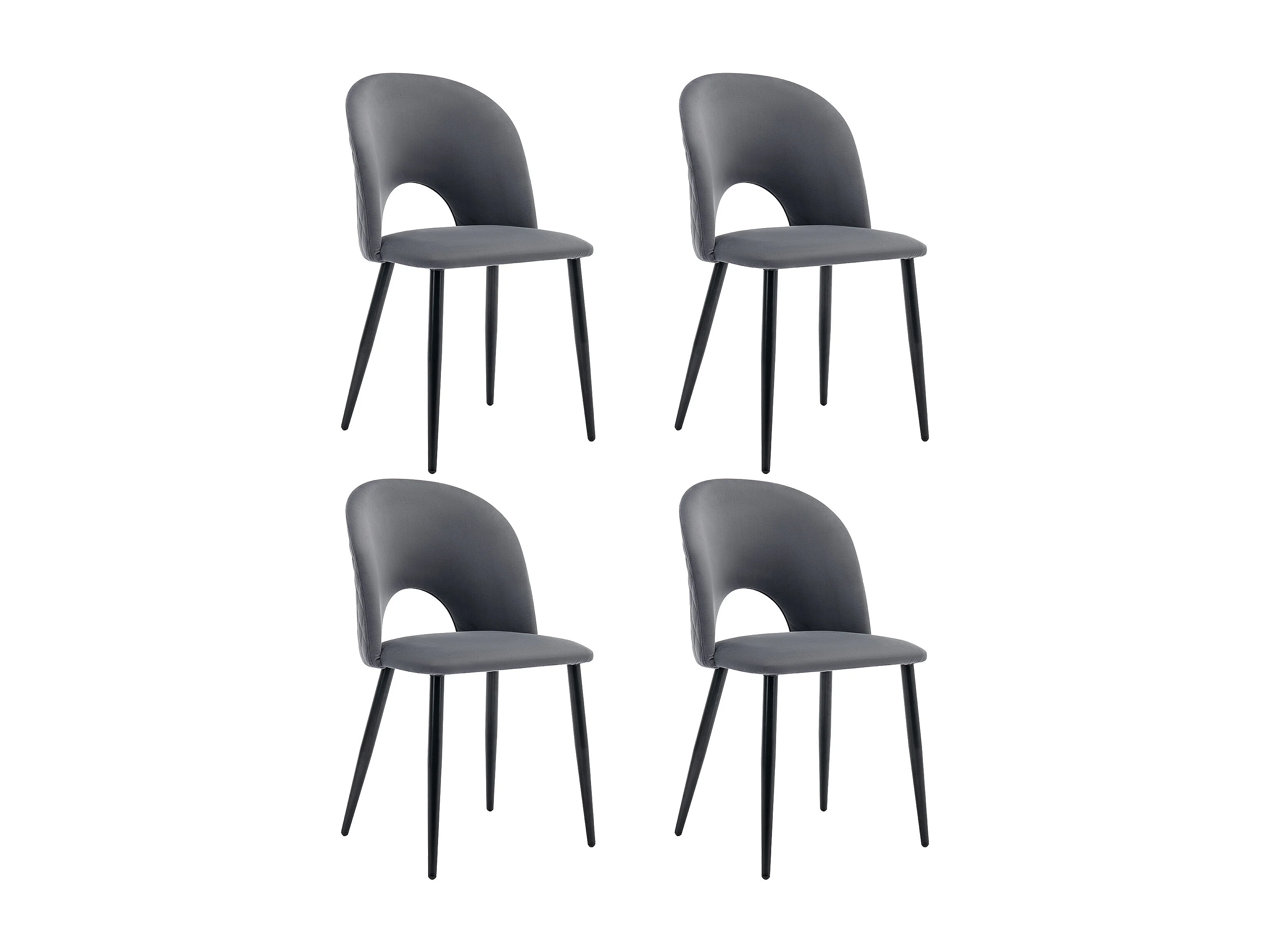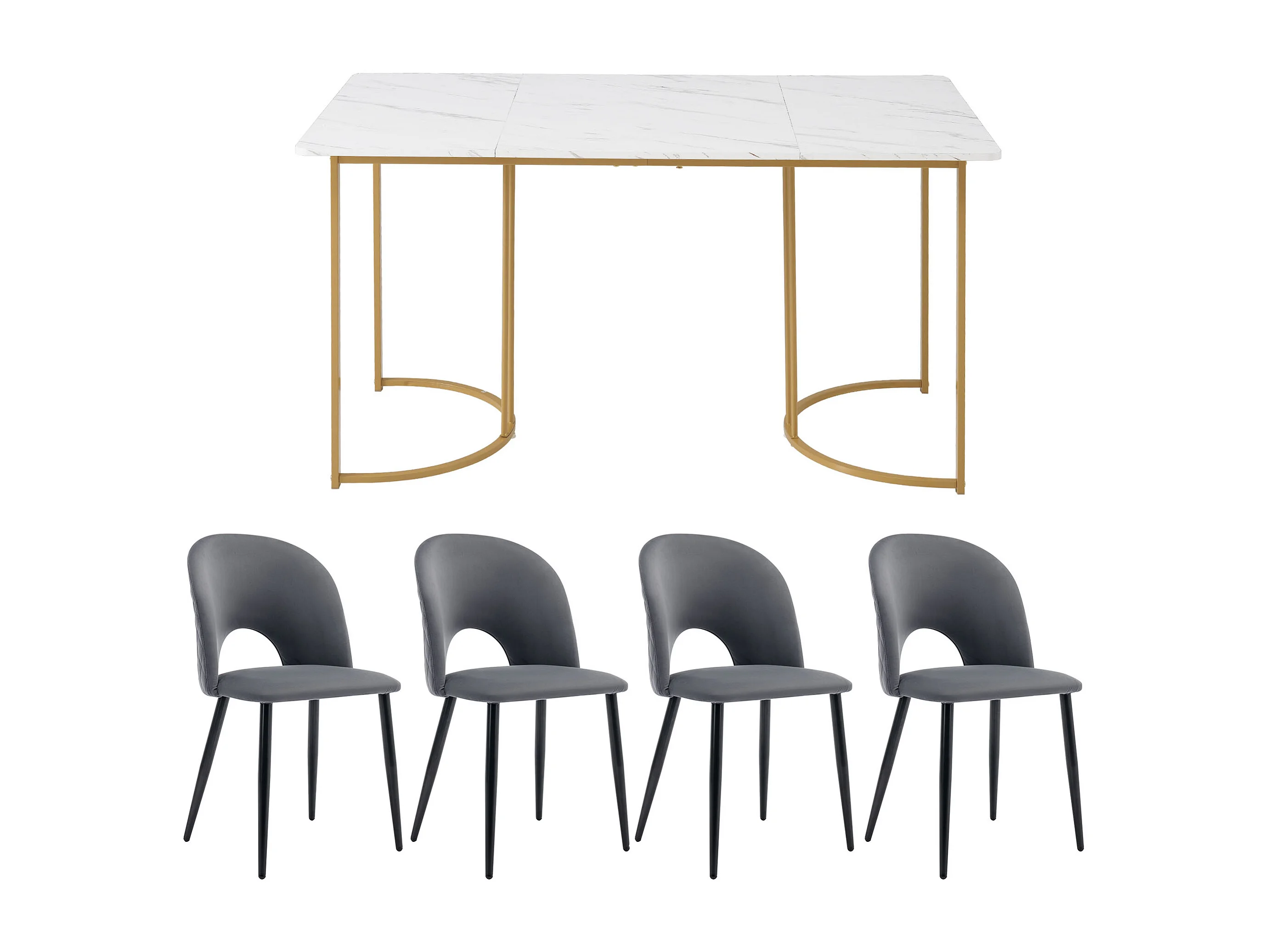 Ensemble salle à manger 5 pièces, table 140x80x75 cm avec 4 chaises en velours gris, pieds métalliques noirs, MDF table blanche