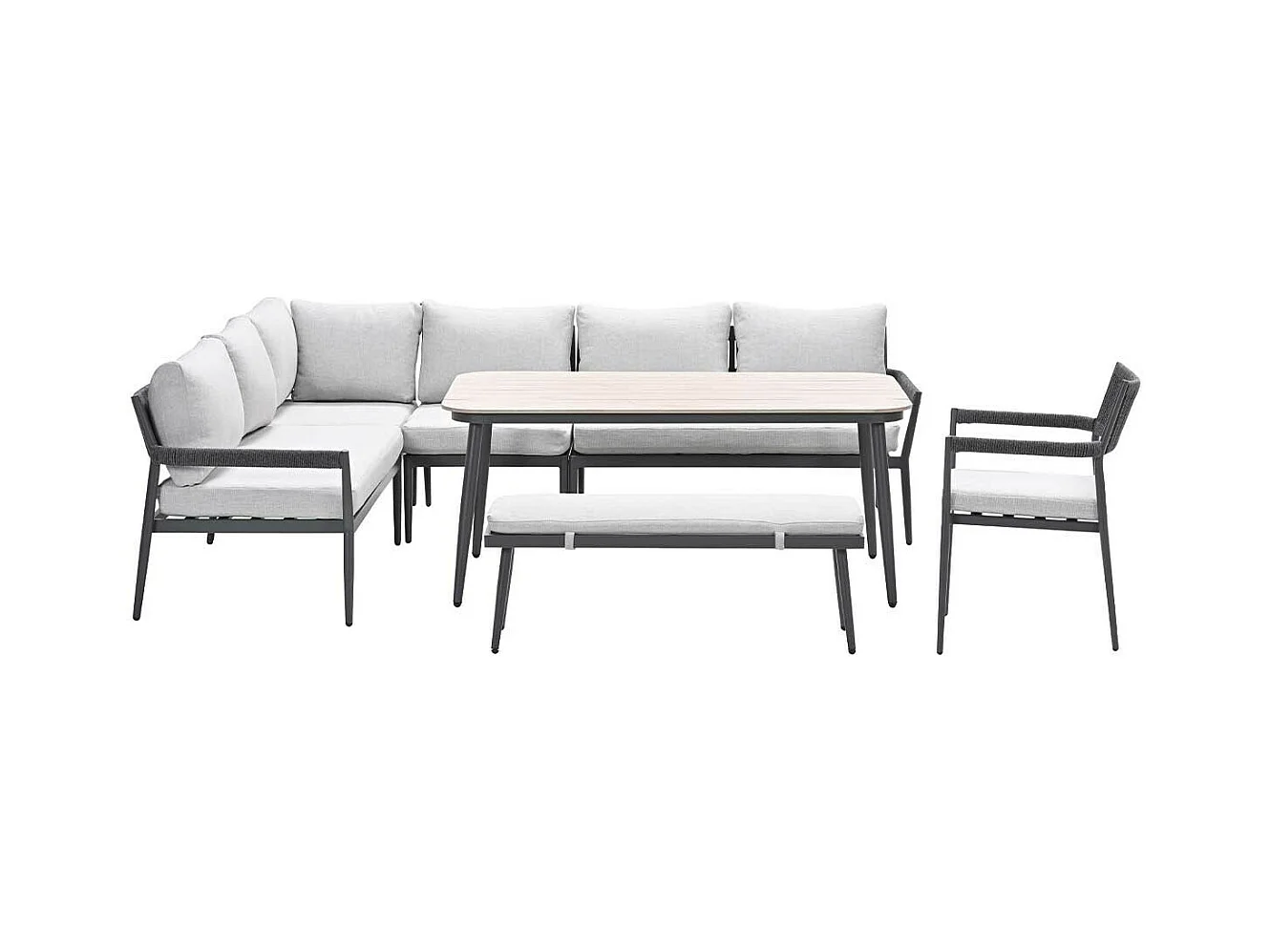 Ensemble salon salle à manger Garden Impressions Tineo gris foncé - 7 pièces