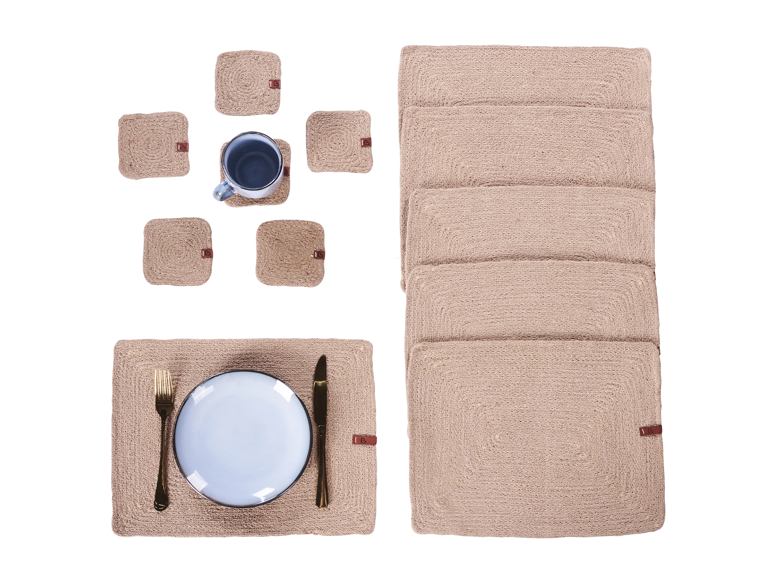 Ensemble sets de table et sous-verres RIBBERY Naturel Jute