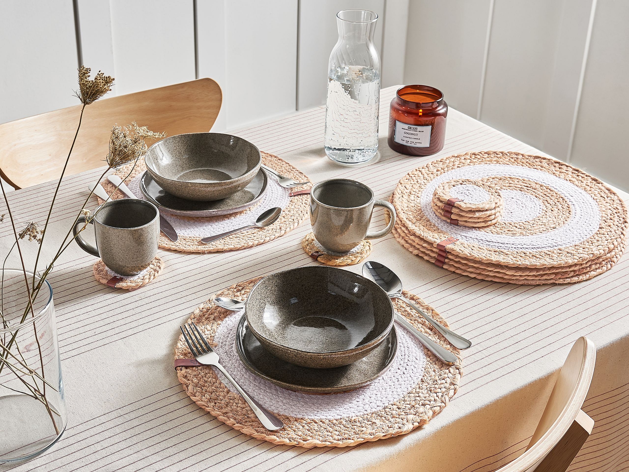 Ensemble sets de table et sous-verres PEPPERLEAF Naturel Jute
