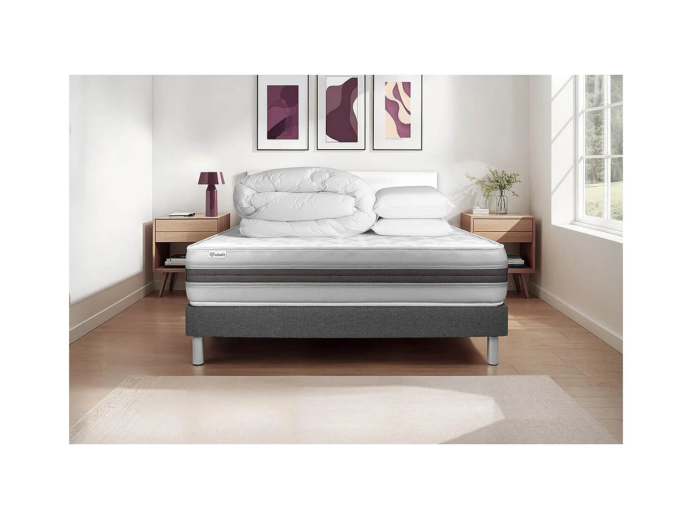 Pack prêt à dormir matelas Mémoire de forme ACTIMEMO ZEN 140x190 7zones de confort + sommier KIT gris + 2 oreillers +couette