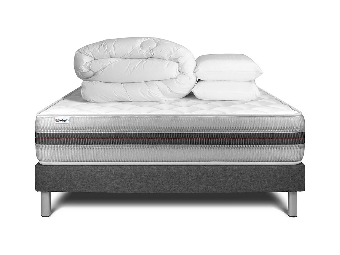 Pack prêt à dormir matelas Latex + Mémoire de forme ACTILATEX ZEN 140x190 cm + sommier KIT gris + 2 oreillers + couette