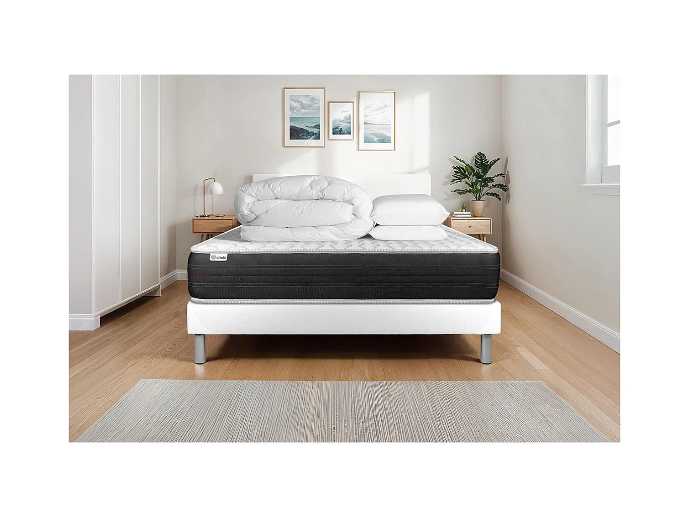 Pack prêt à dormir VITALSPRING ZEN 140 x 190 cm sommier Kit blanc
