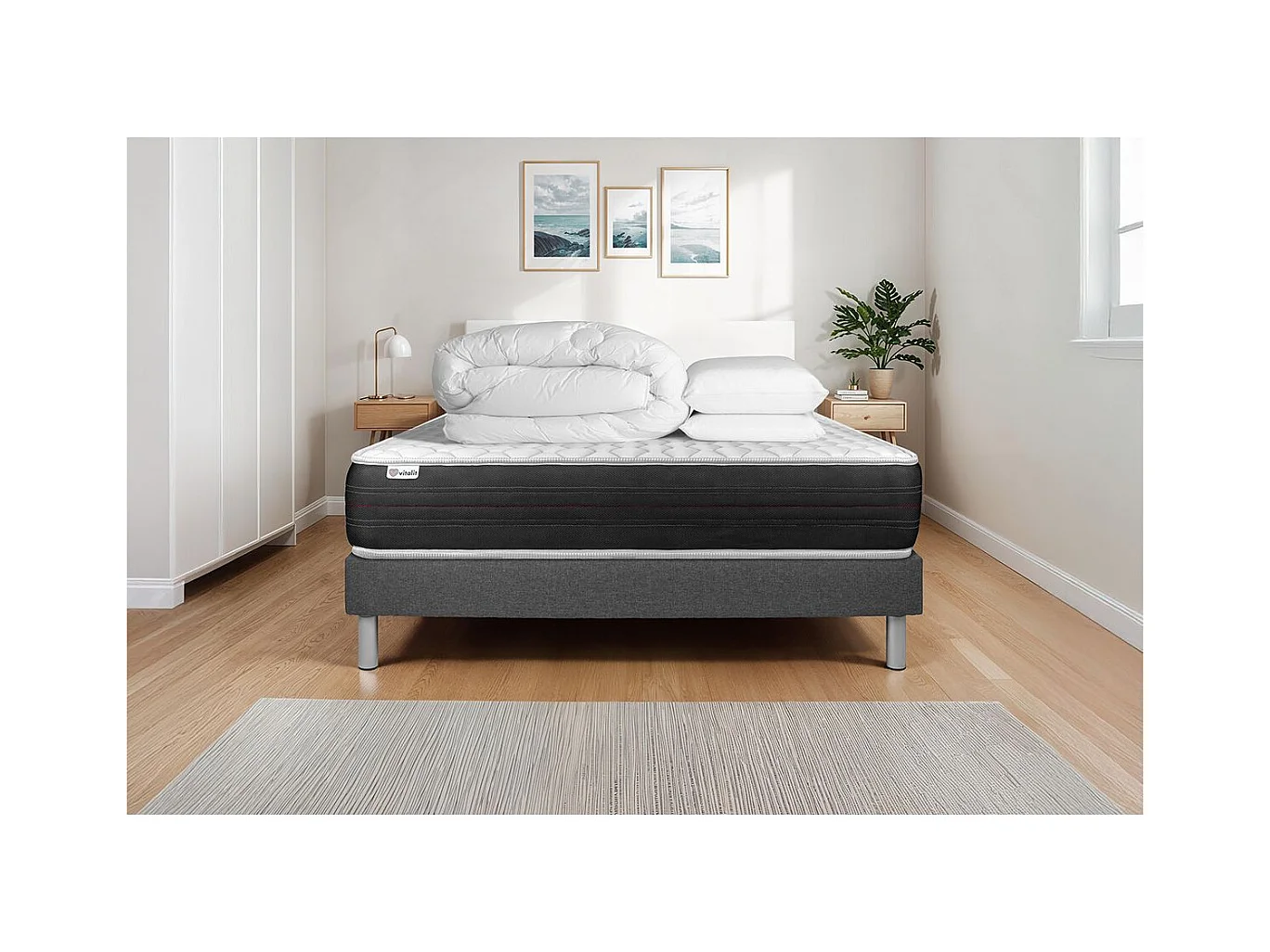 Pack prêt à dormir VITALSPRING 140 x 190 cm sommier Kit gris