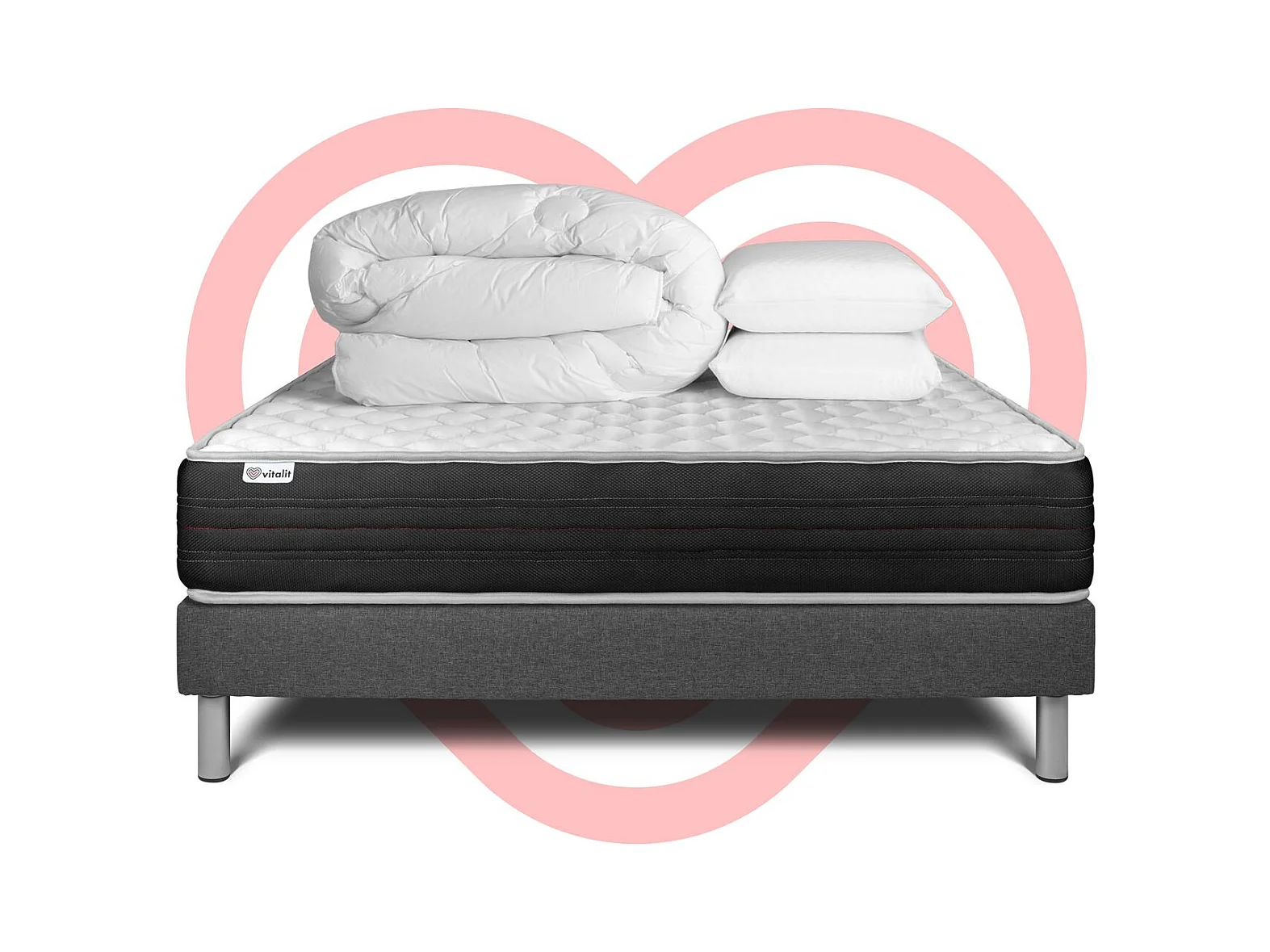 Pack prêt à dormir VITALPOWER 140 x 200 cm sommier Kit gris