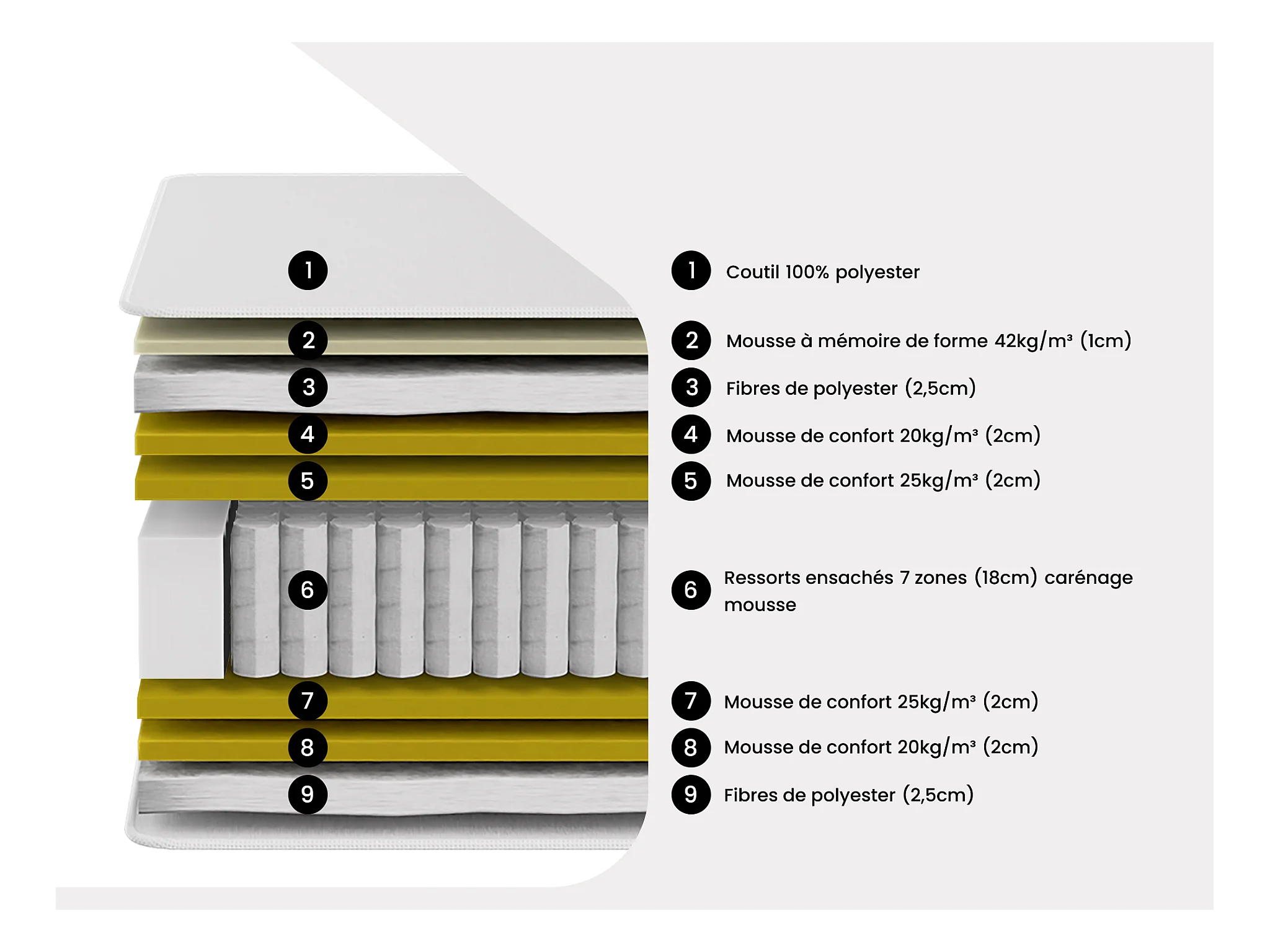 Ensemble 160 x 200 cm sommier tapissier + matelas hybride ressorts ensachés 7 zones et mémoire de forme ép.30cm - OLIANE de YSMÉE